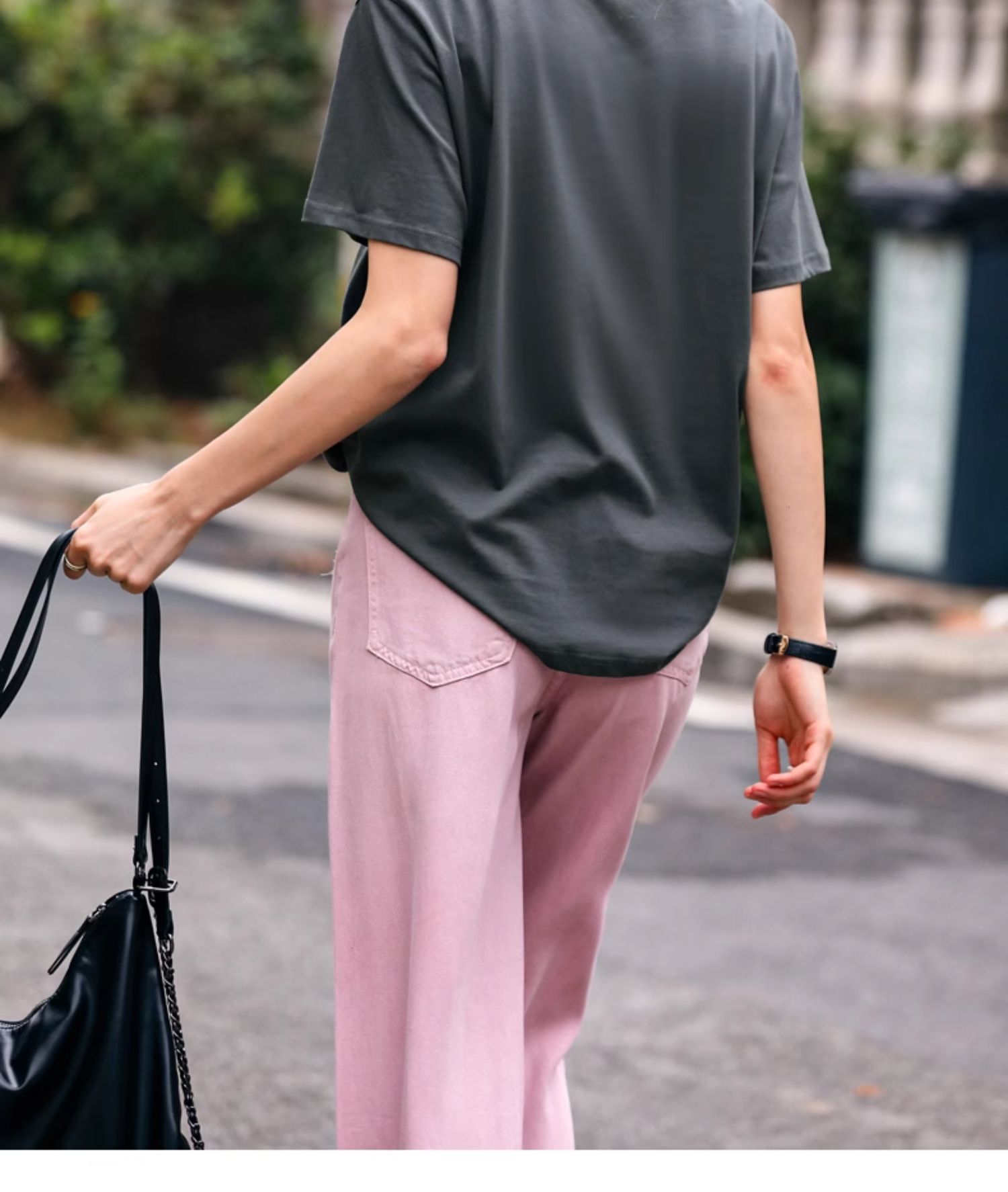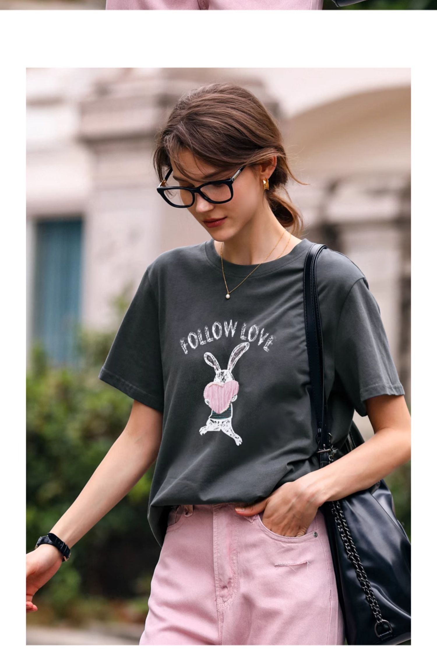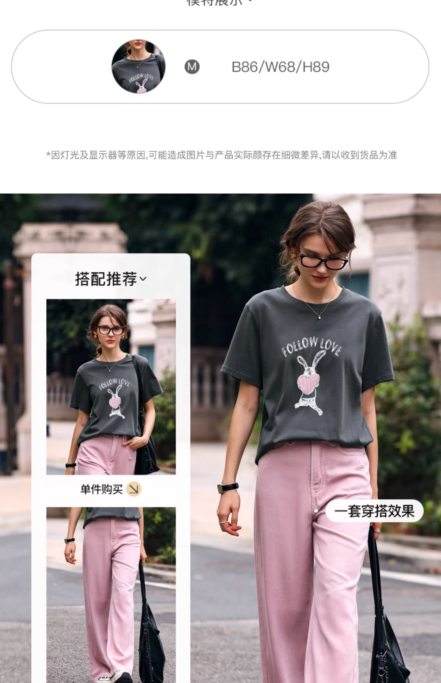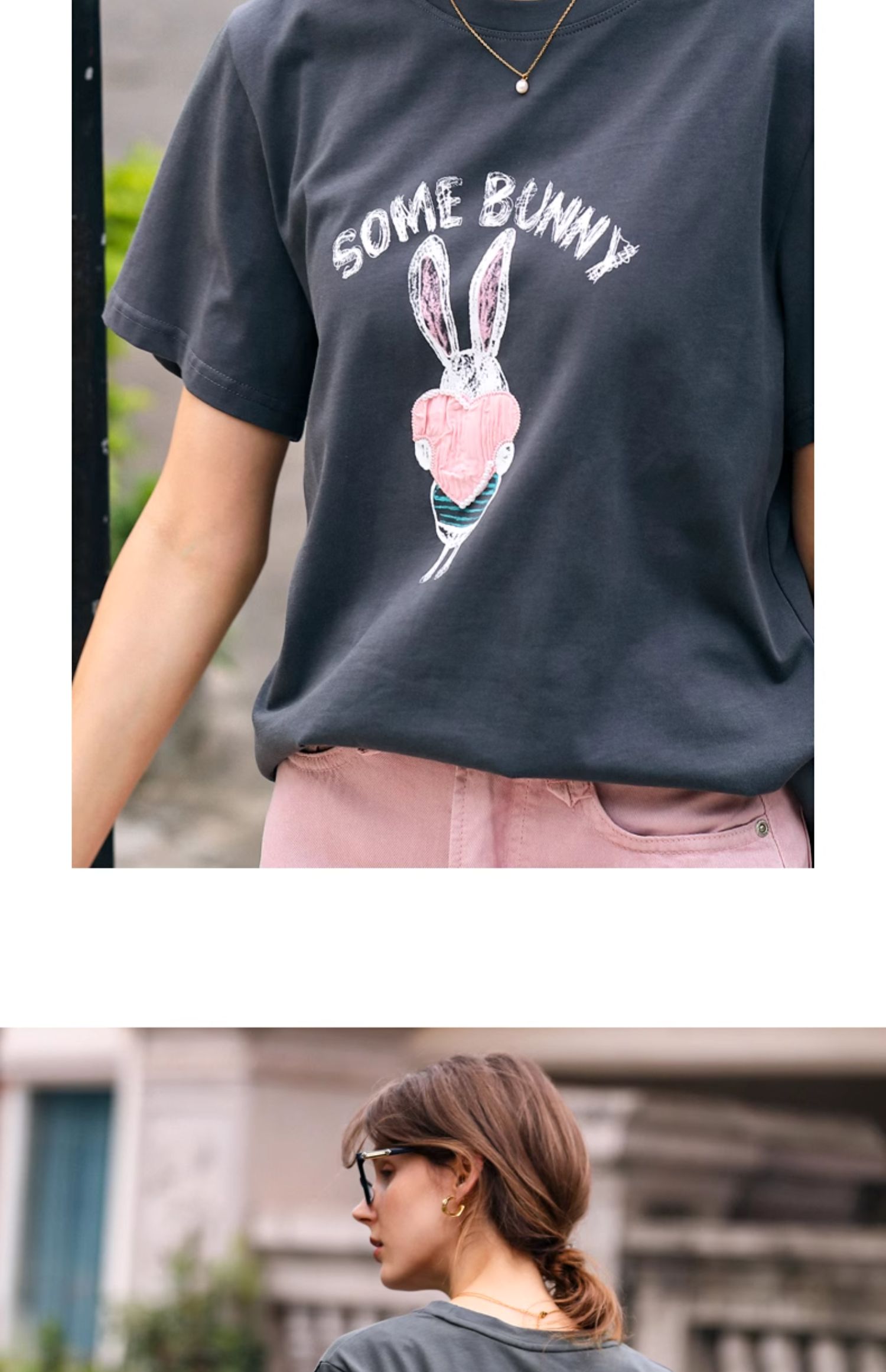OLrain欧芮儿灰色T恤女春季2024年新款简约百搭宽松印花短袖上衣