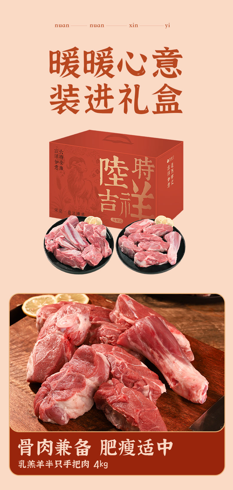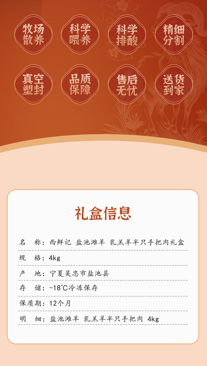 西鲜记 盐池滩羊 乳羔羊半只手把肉礼盒 4kg
