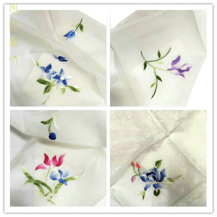 凯崎湘绣 手帕 纯手工刺绣 复古中国风绣花手帕 丝巾 精品双面绣手绢 随手礼白色纺丝手帕diy定制名字 纺丝手帕