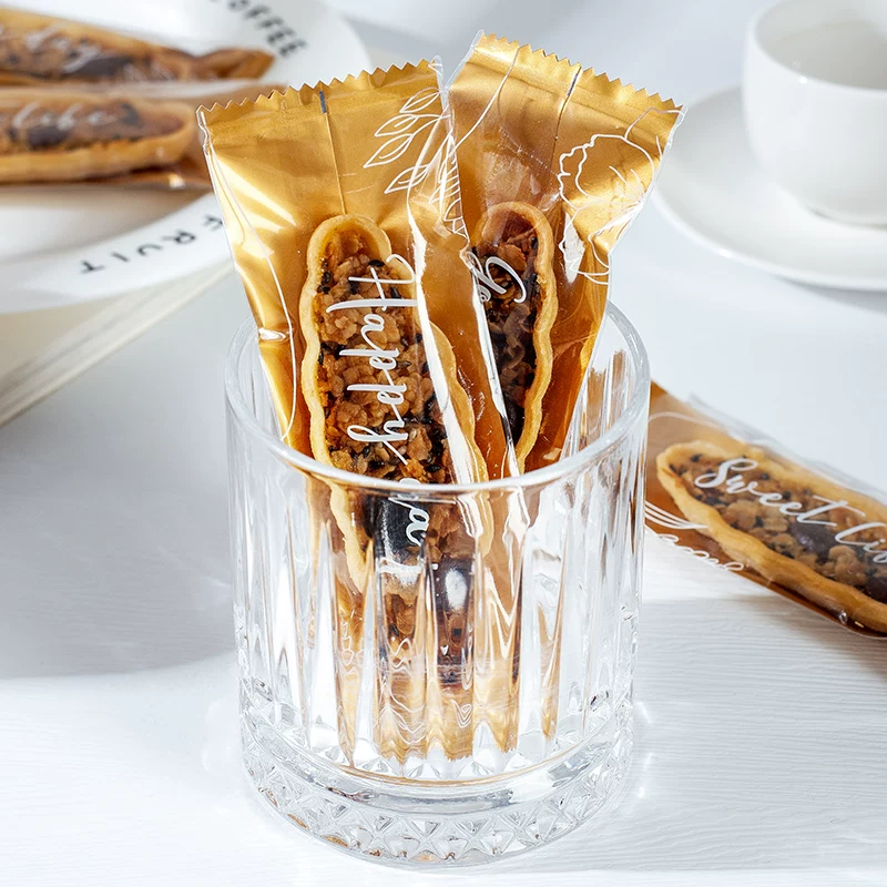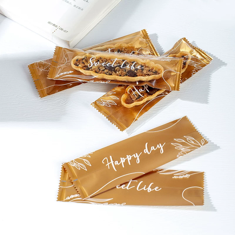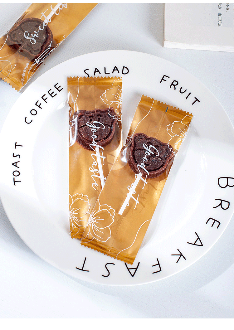约100个 咖色英文三合一 糯米船包装袋 机封袋 棒棒糖焦糖杏仁脆包装袋