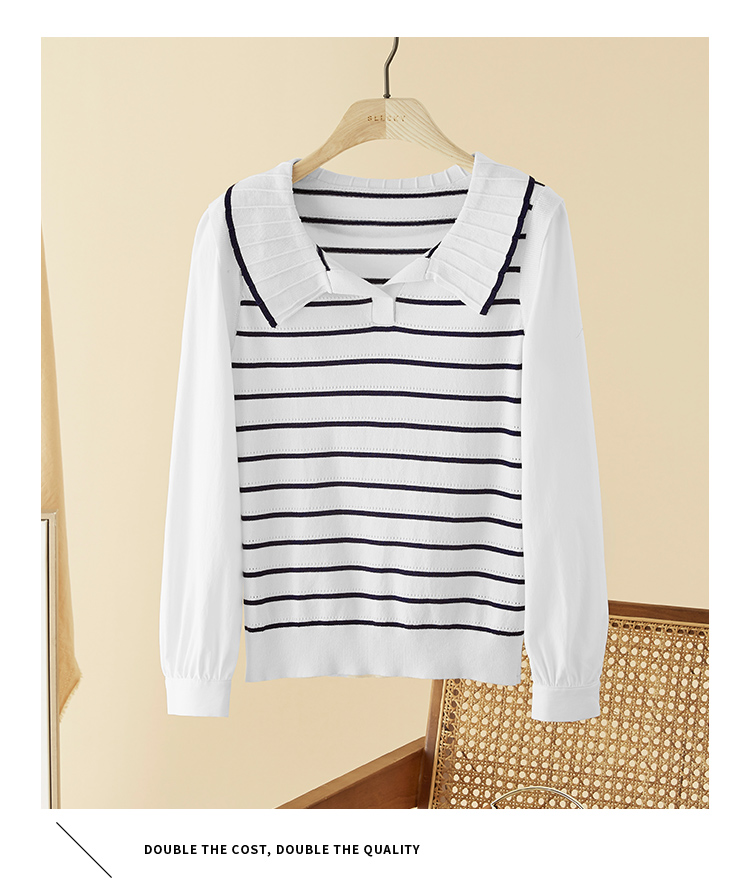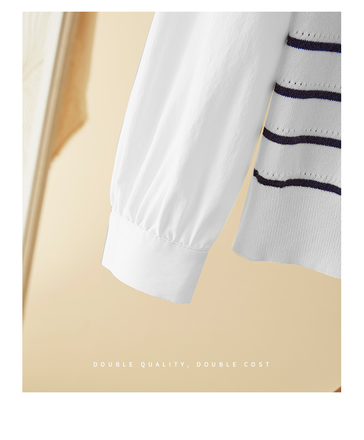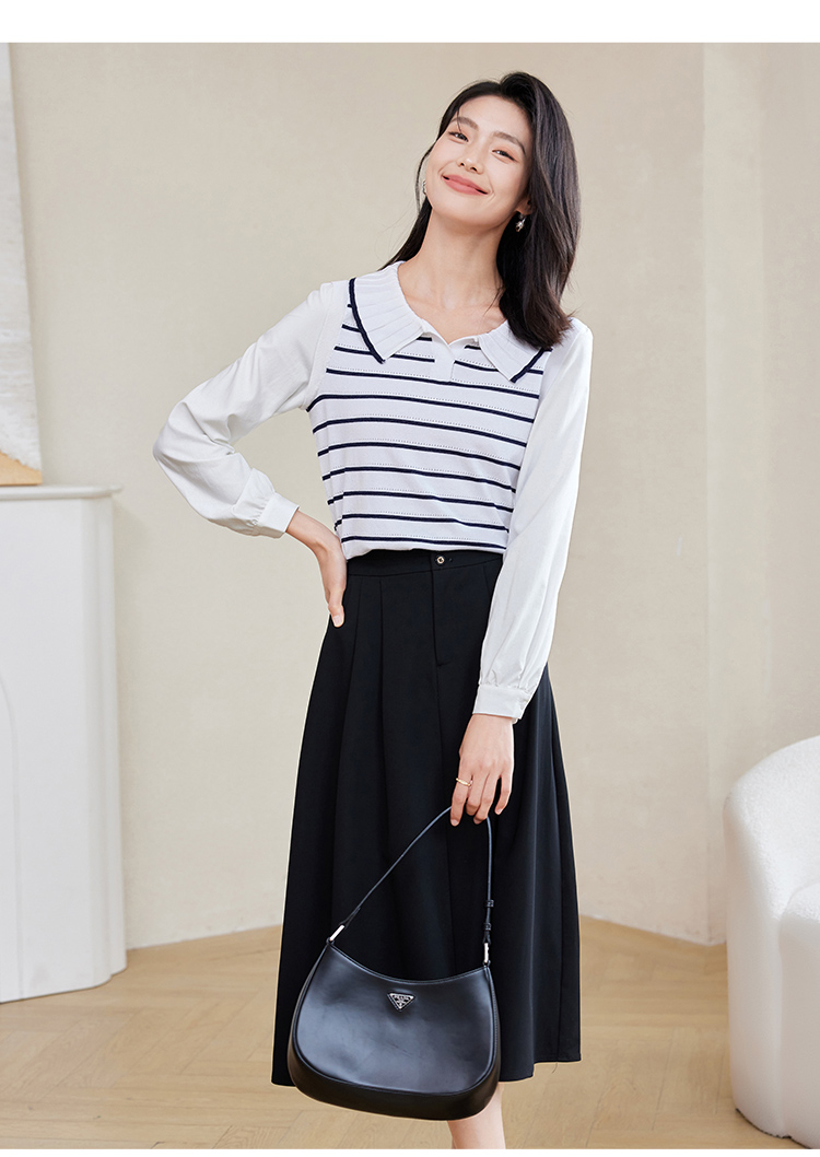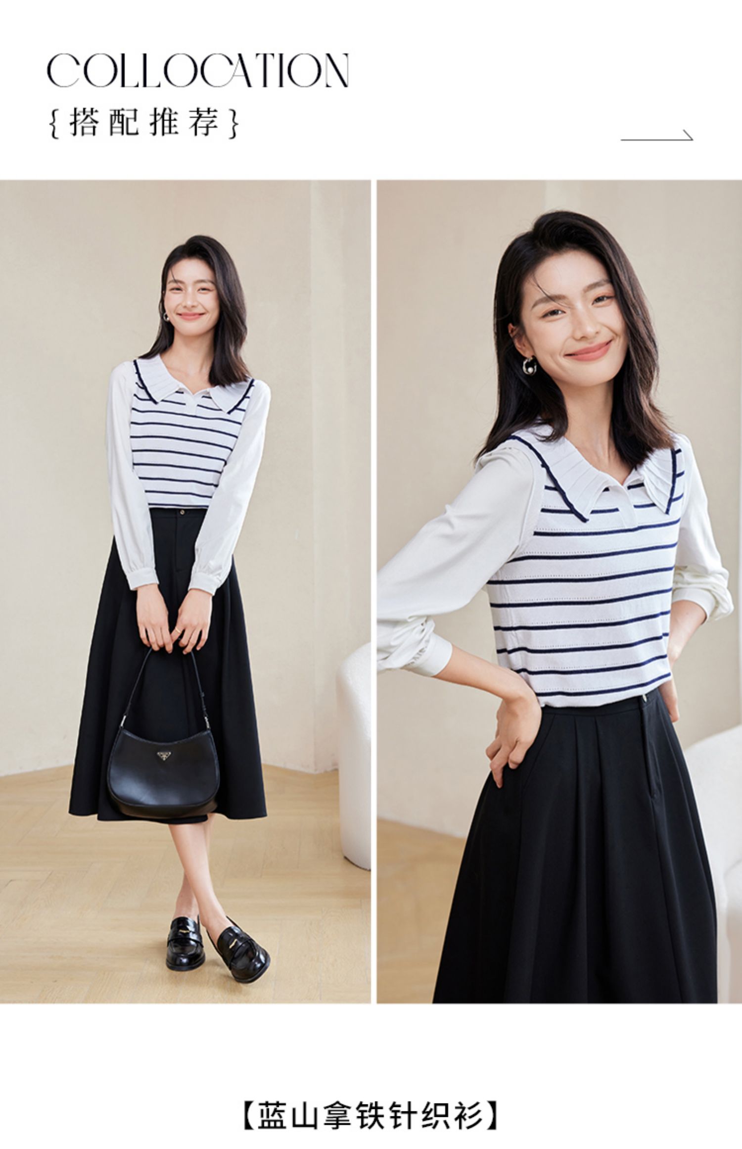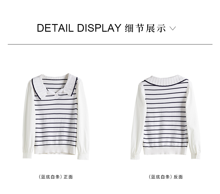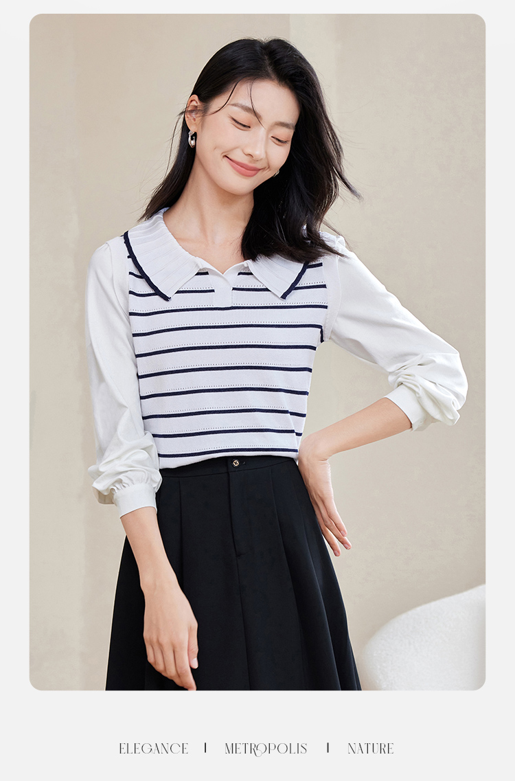 【开门红】熙世界设计感时尚条纹海军领拼接上衣假两件针织衫2025秋装新款