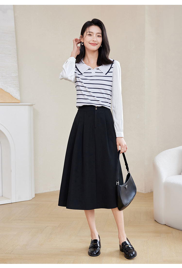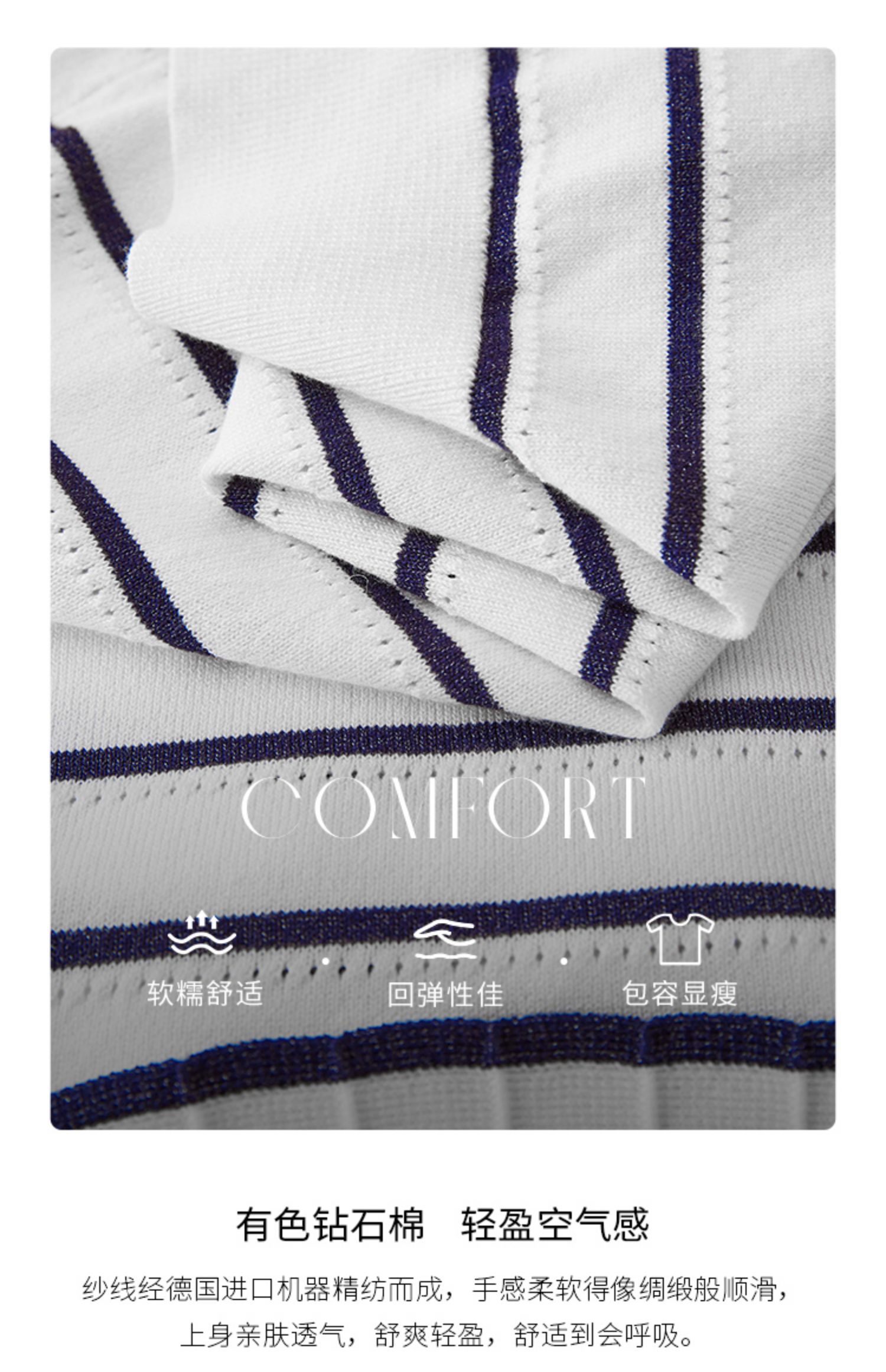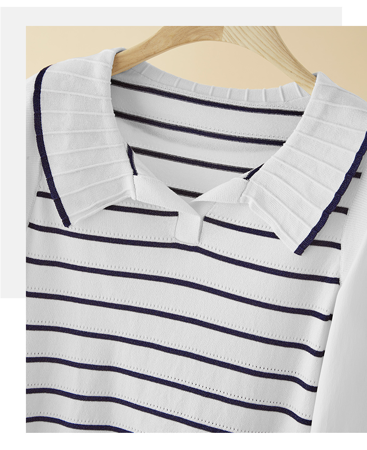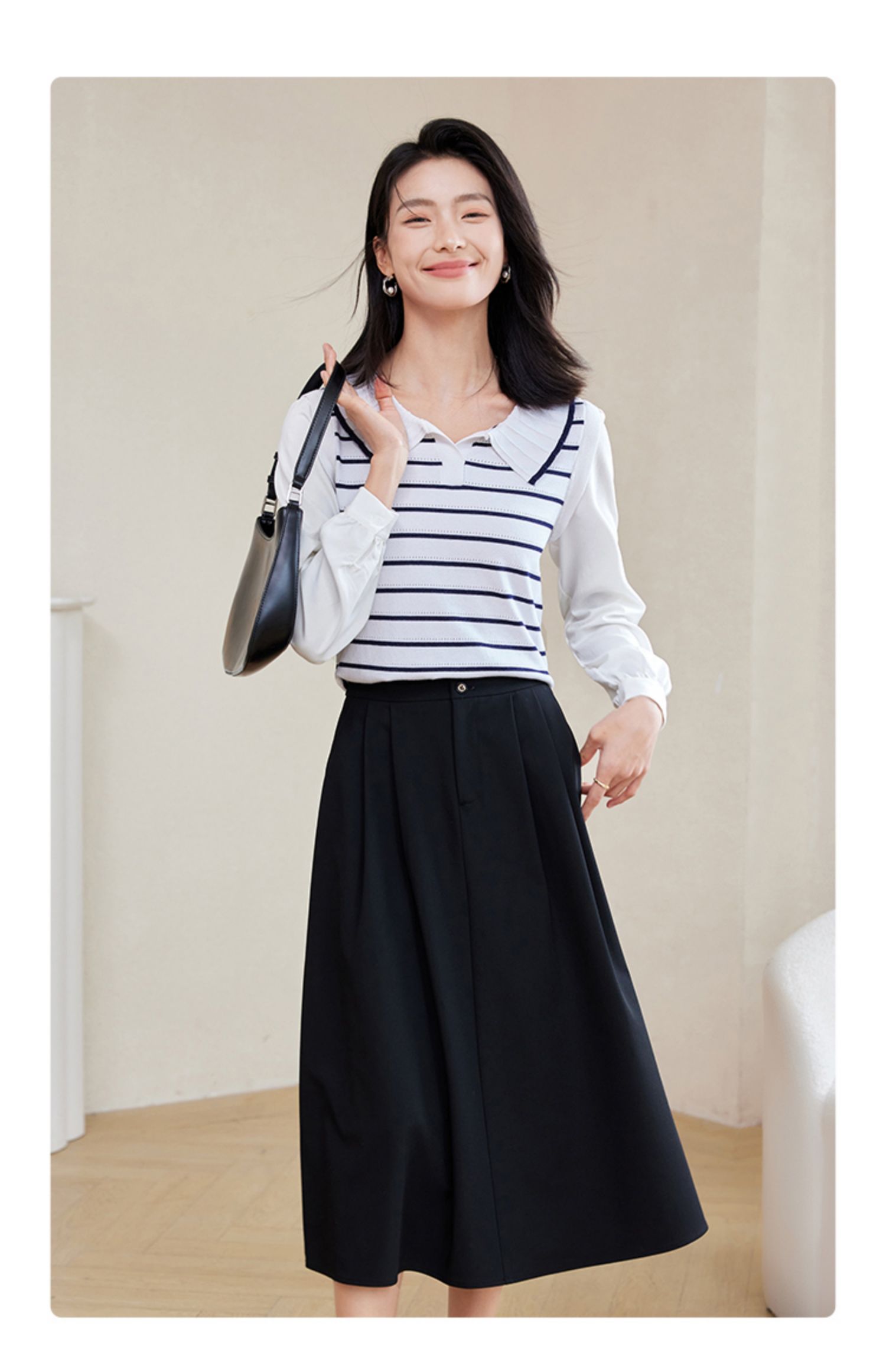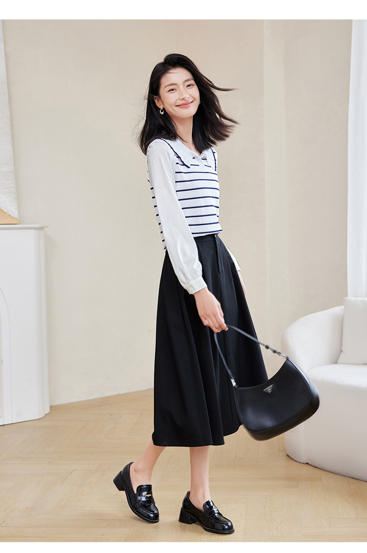 【开门红】熙世界设计感时尚条纹海军领拼接上衣假两件针织衫2025秋装新款