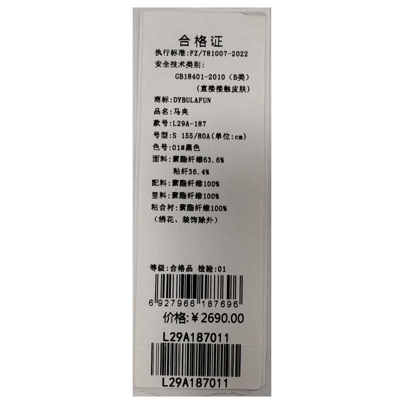 戴布拉芬马夹L29A187