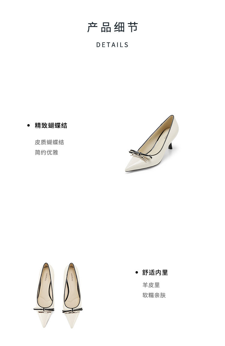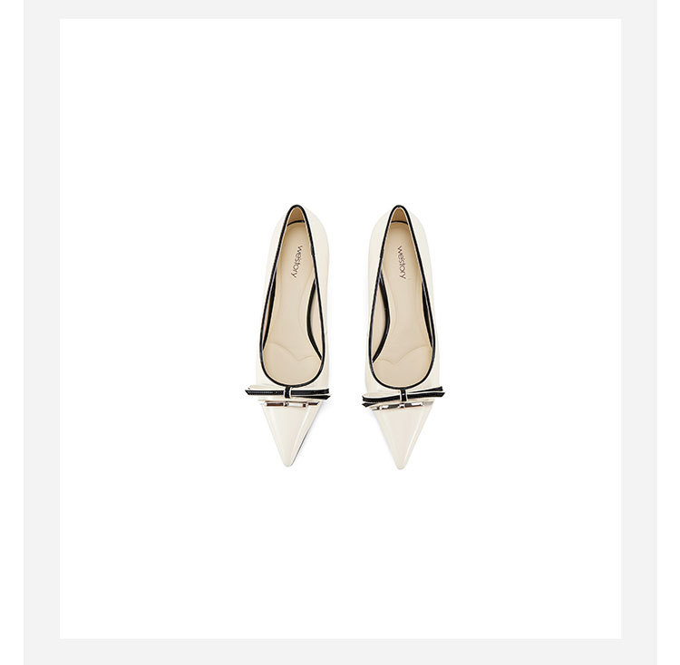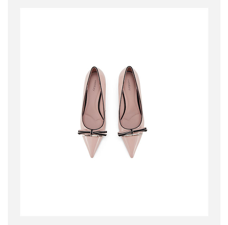 Westory2025年春季尖头中跟漆皮通勤百搭浅口单鞋W25AE57921