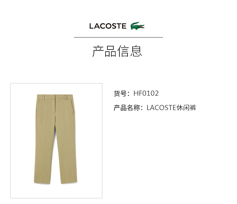 【海南专供价】Lacoste法国鳄鱼女装新款时尚简约商务直筒裤长裤HF0102-10