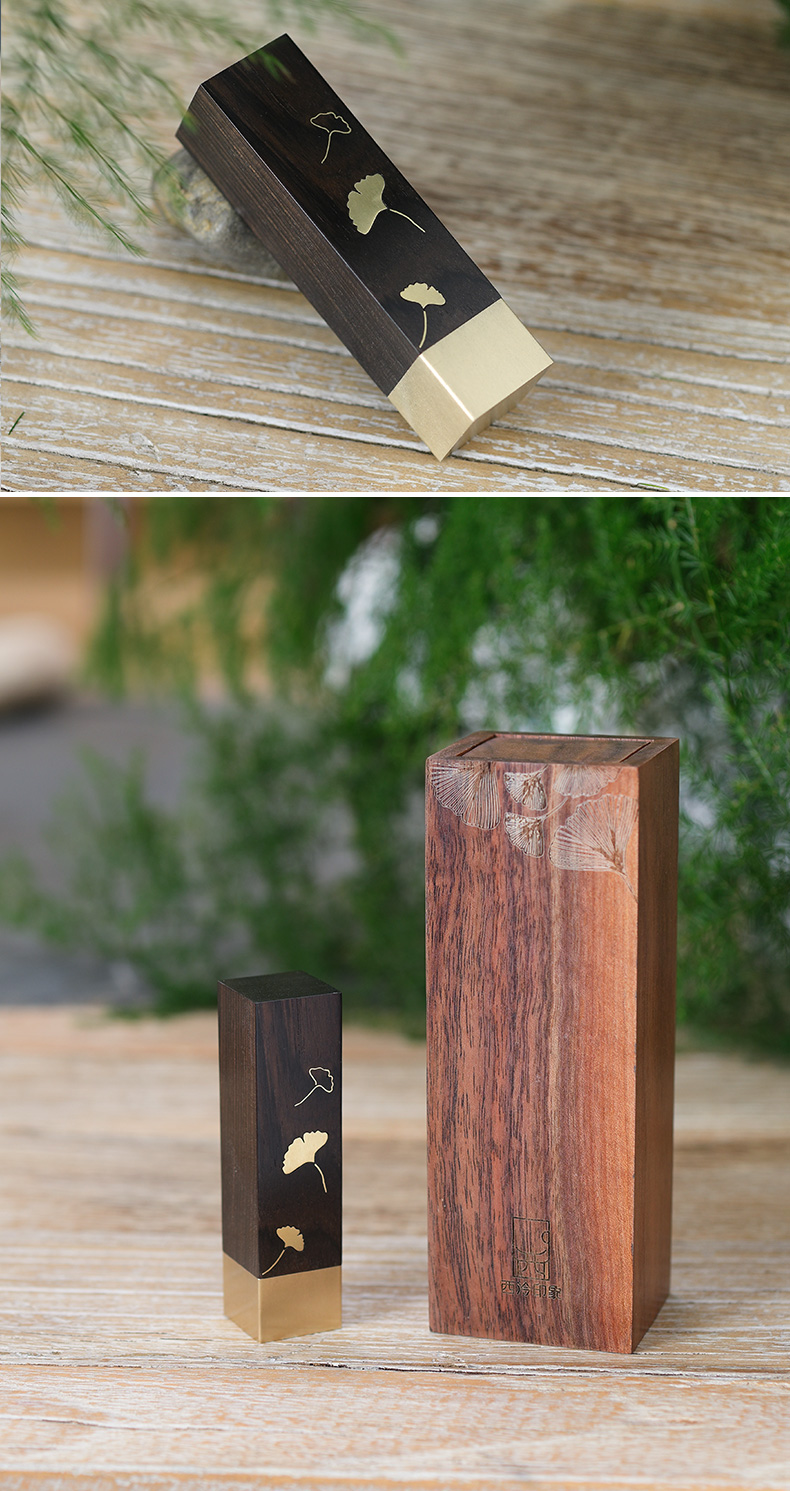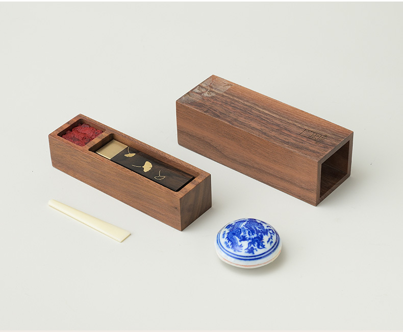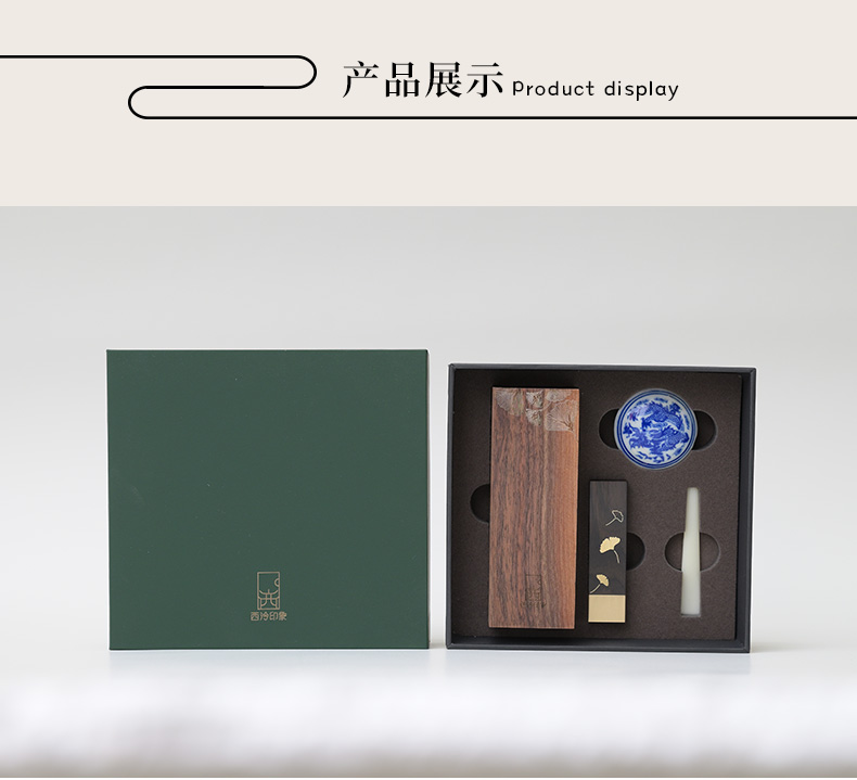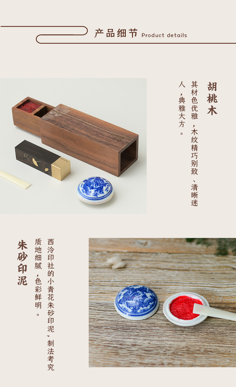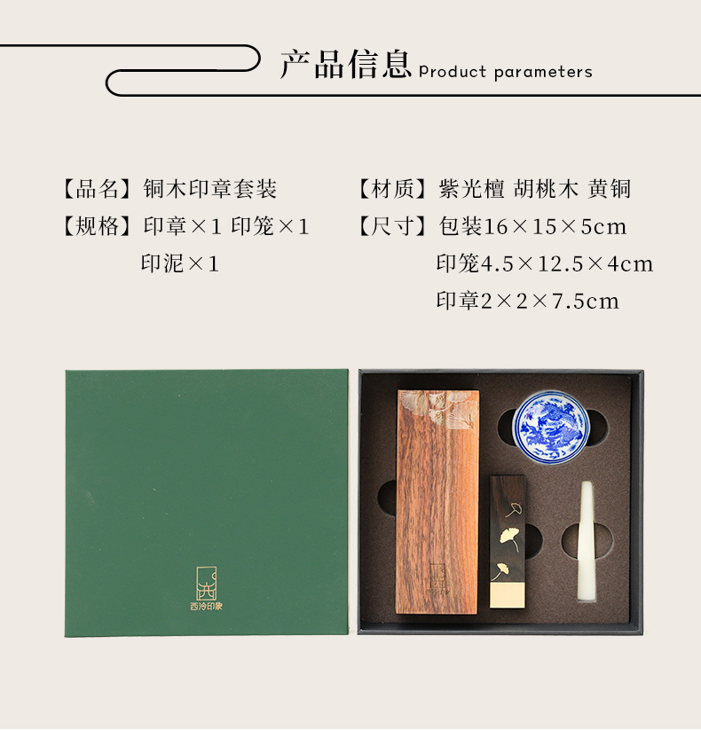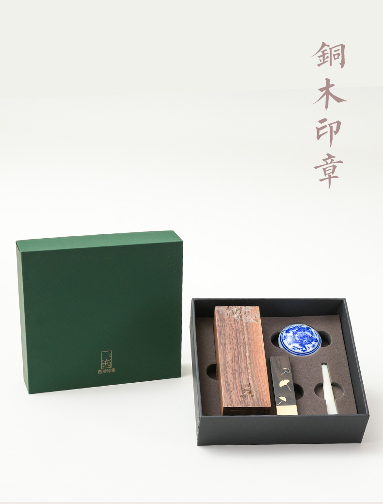 西泠印社知秋套装 桐木印章+印泥+印笼