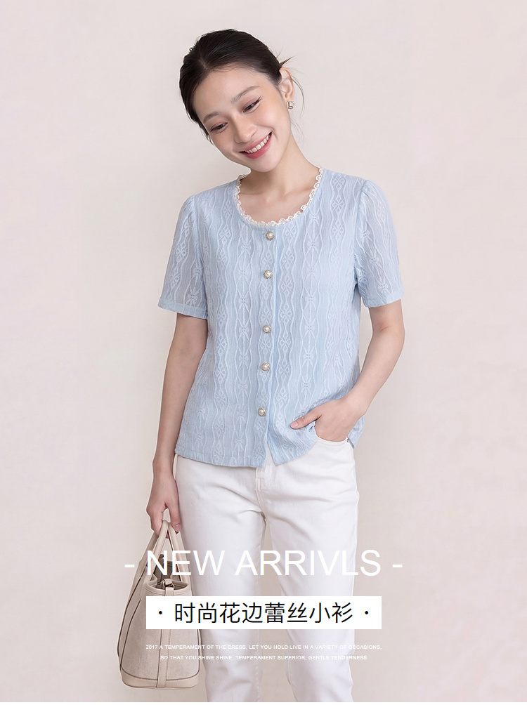 奢姿大码女装2026夏季减龄花边蕾丝圆领小衫胖妹妹时尚名媛风上衣9962294628