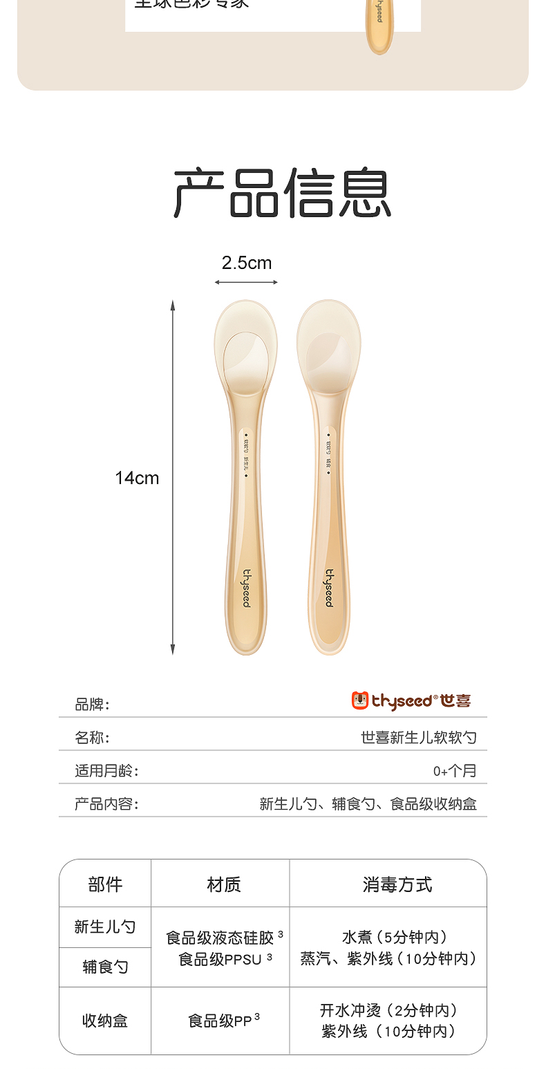 世喜硅胶勺子新生婴儿勺子辅食勺子硅胶软勺喂奶勺宝宝勺子米粉勺SX-90882