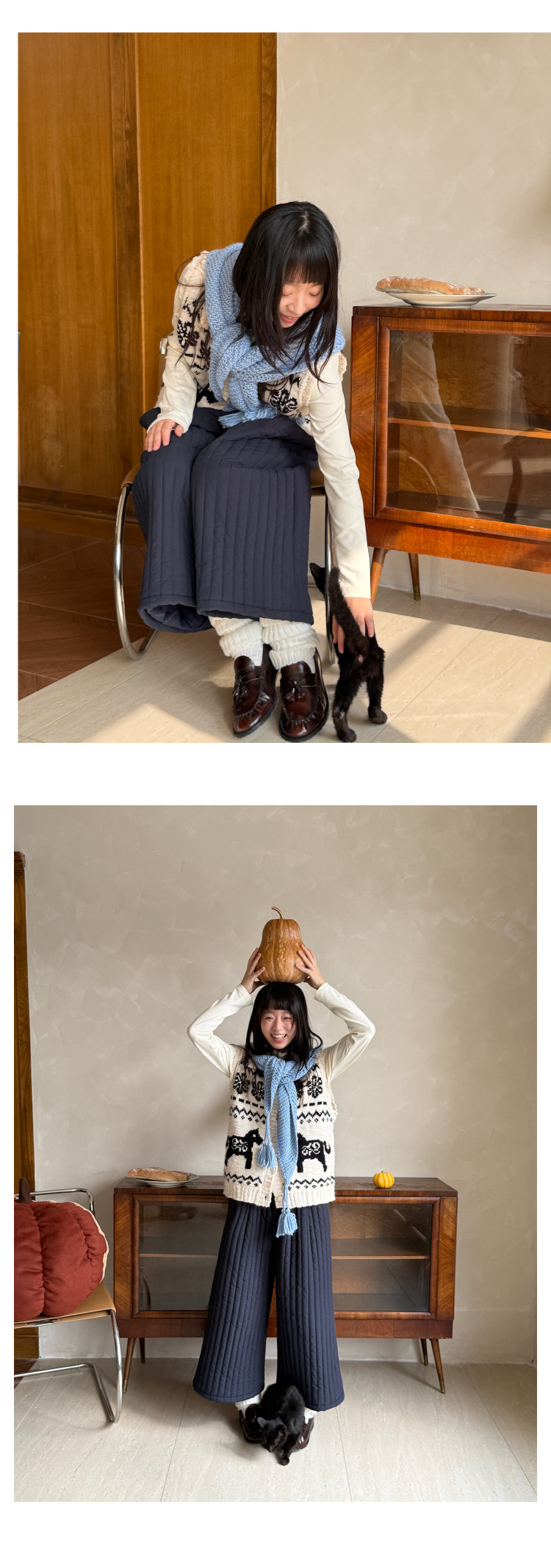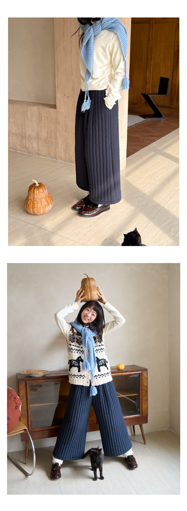 nothe Case布然/NC2548017/「丘山暮冬」温暖格纹九分绗棉裤