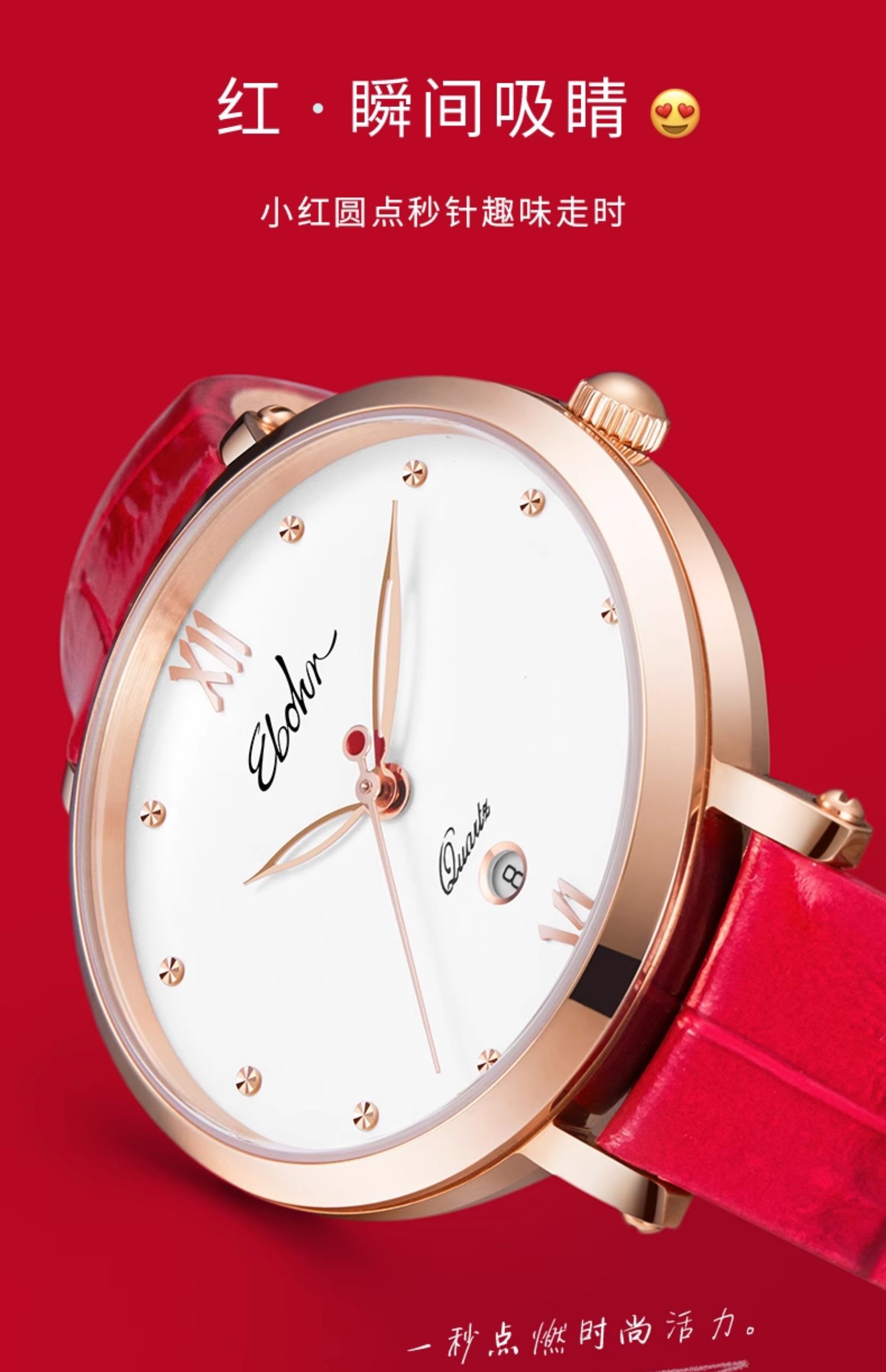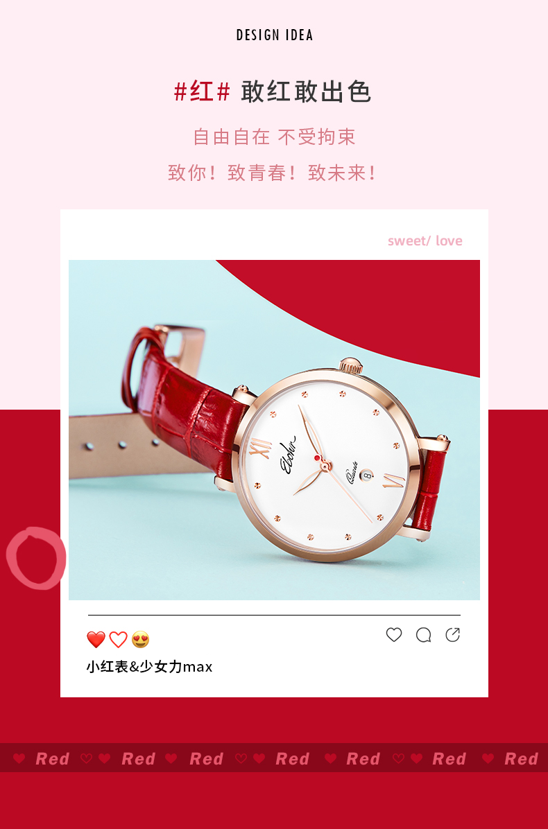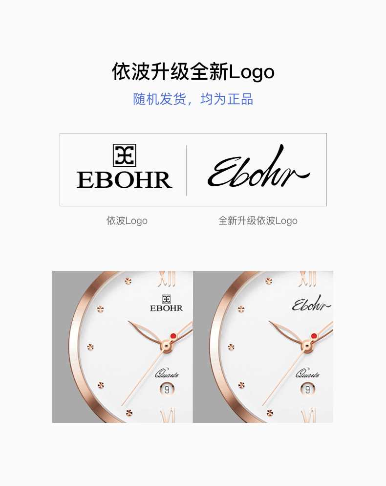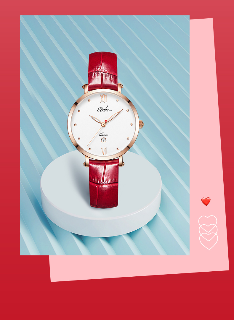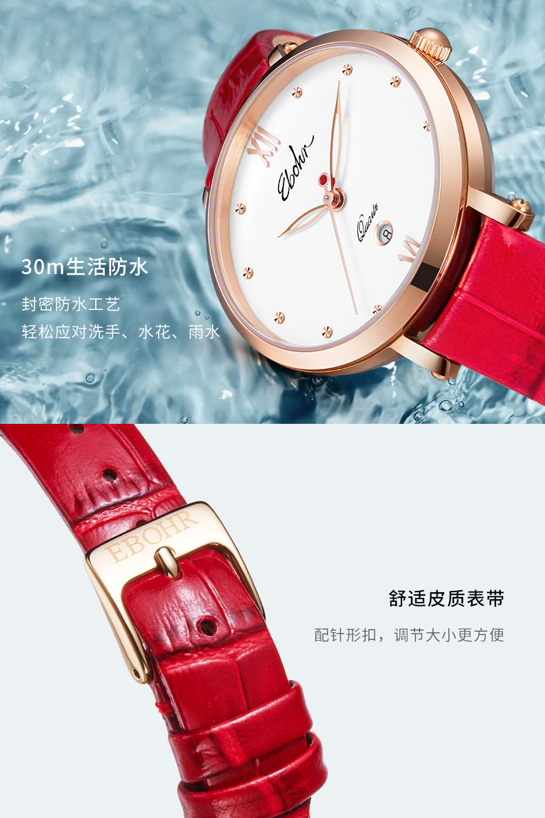 依波表手表EBOHR情侣款男表女表机械表腕表防水皮带日历3617