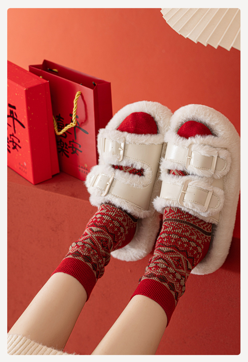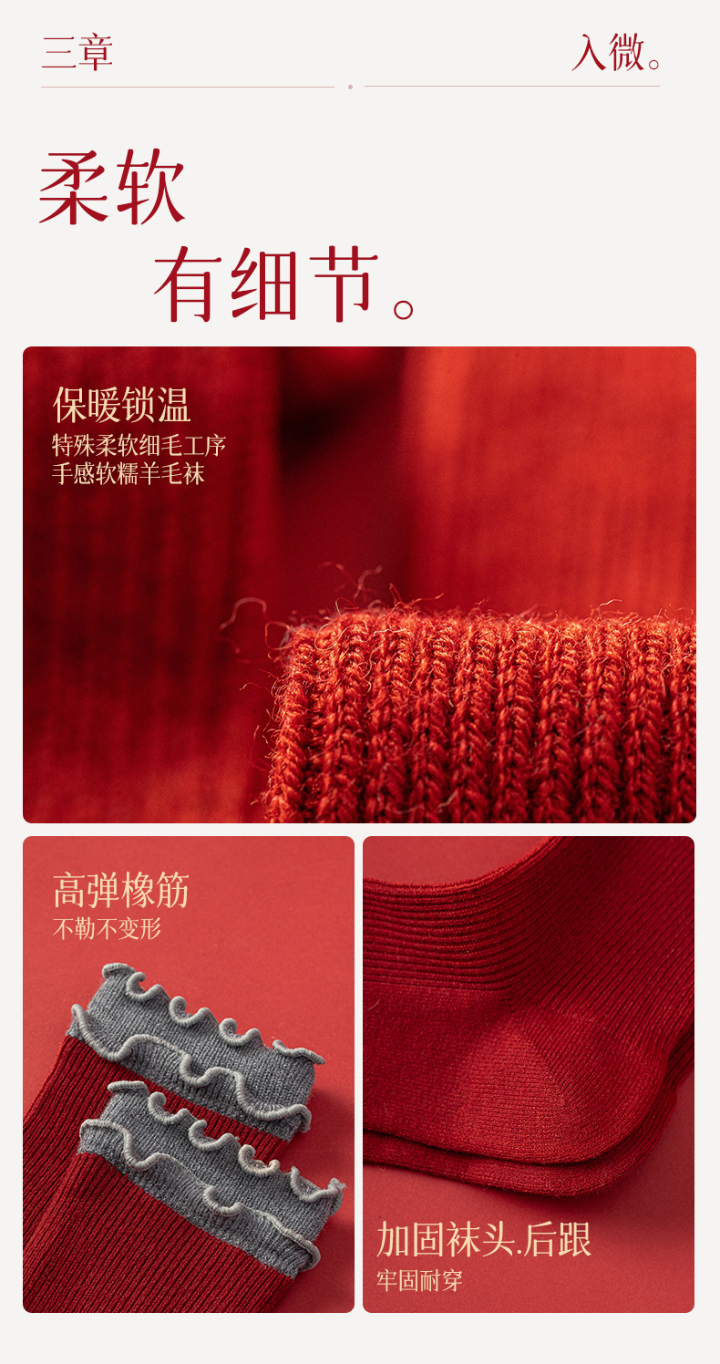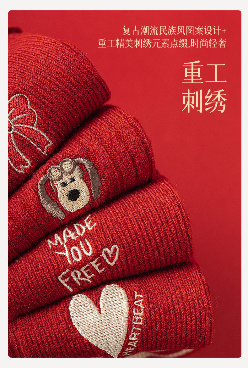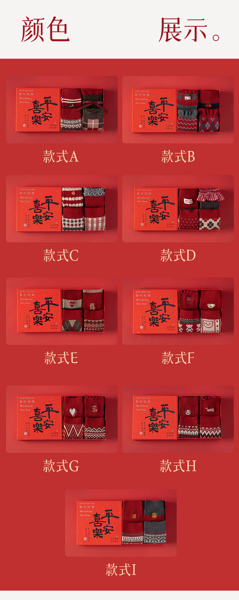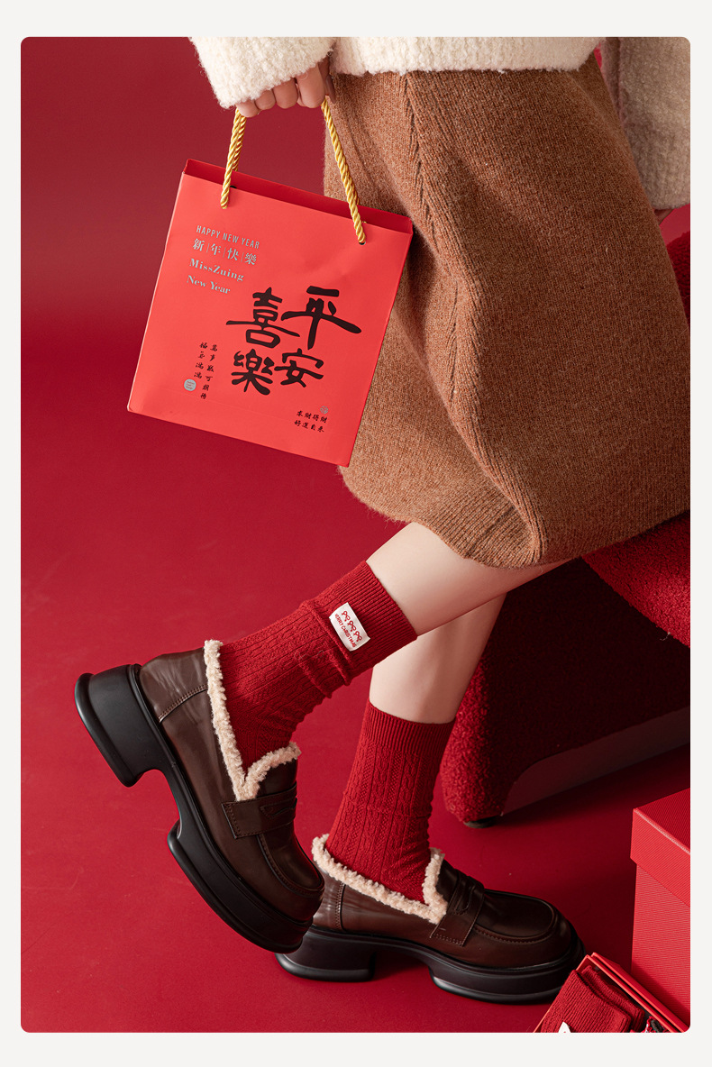 【云优选】鸿运礼盒🎁4双装羊绒袜❗️ 冬季保暖羊绒袜礼盒 大红袜双针双路无线头中筒袜子 本命年红袜 新年袜