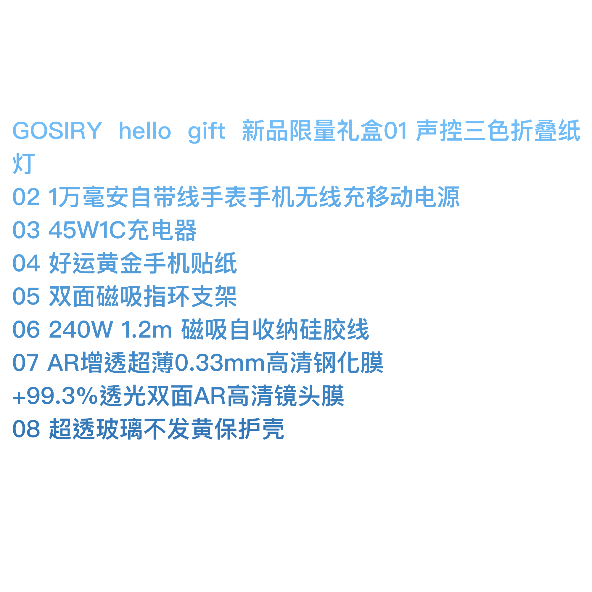 GOSIRY果子理 Hello Gift 限量礼盒-17 Pro 白金(壳膜线头、移动电源、支架、黄金贴、灯)