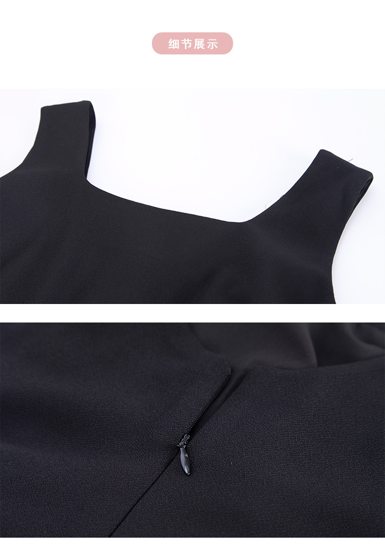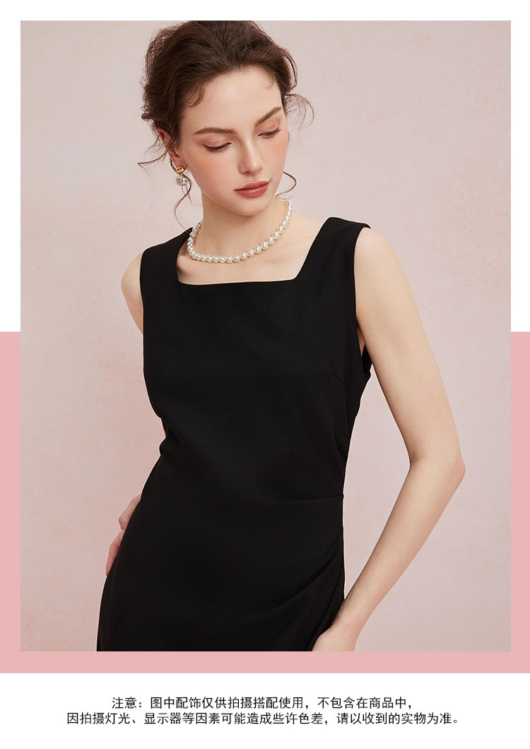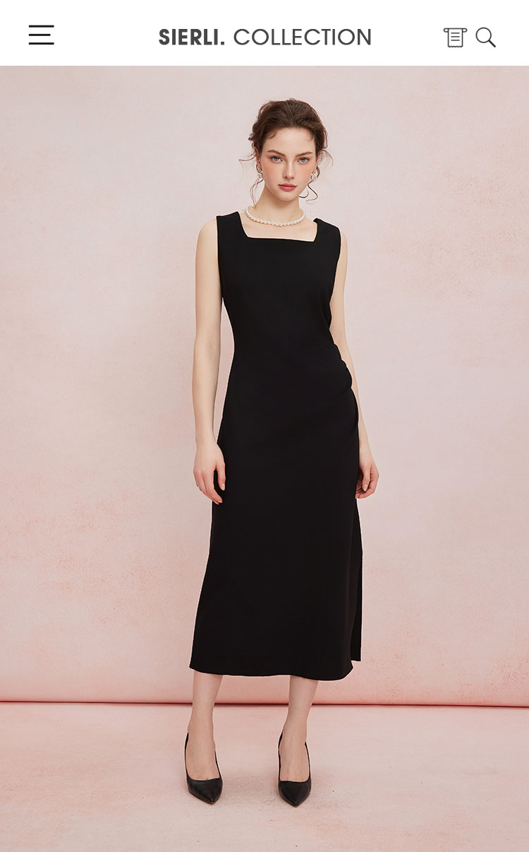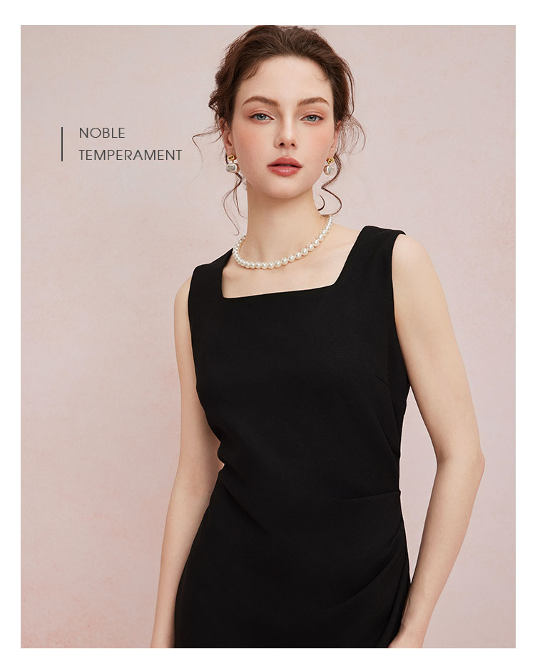QF845斯尔丽2025新款高弹面料舒适收褶显瘦藏肚子侧边开叉背心式连衣裙