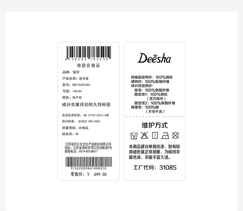 笛莎/Deesha 2026年夏季新款女童中大童精致公主连衣裙裙子