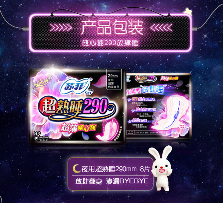 苏菲超熟睡超薄随心翻290 棉质丝薄夜用 洁翼型 8片