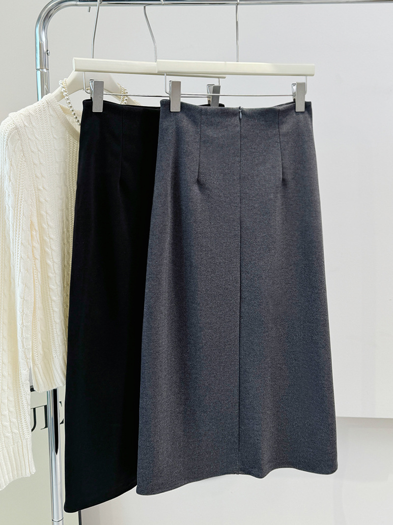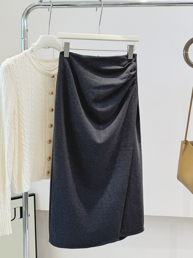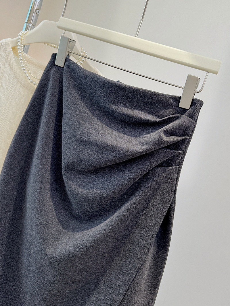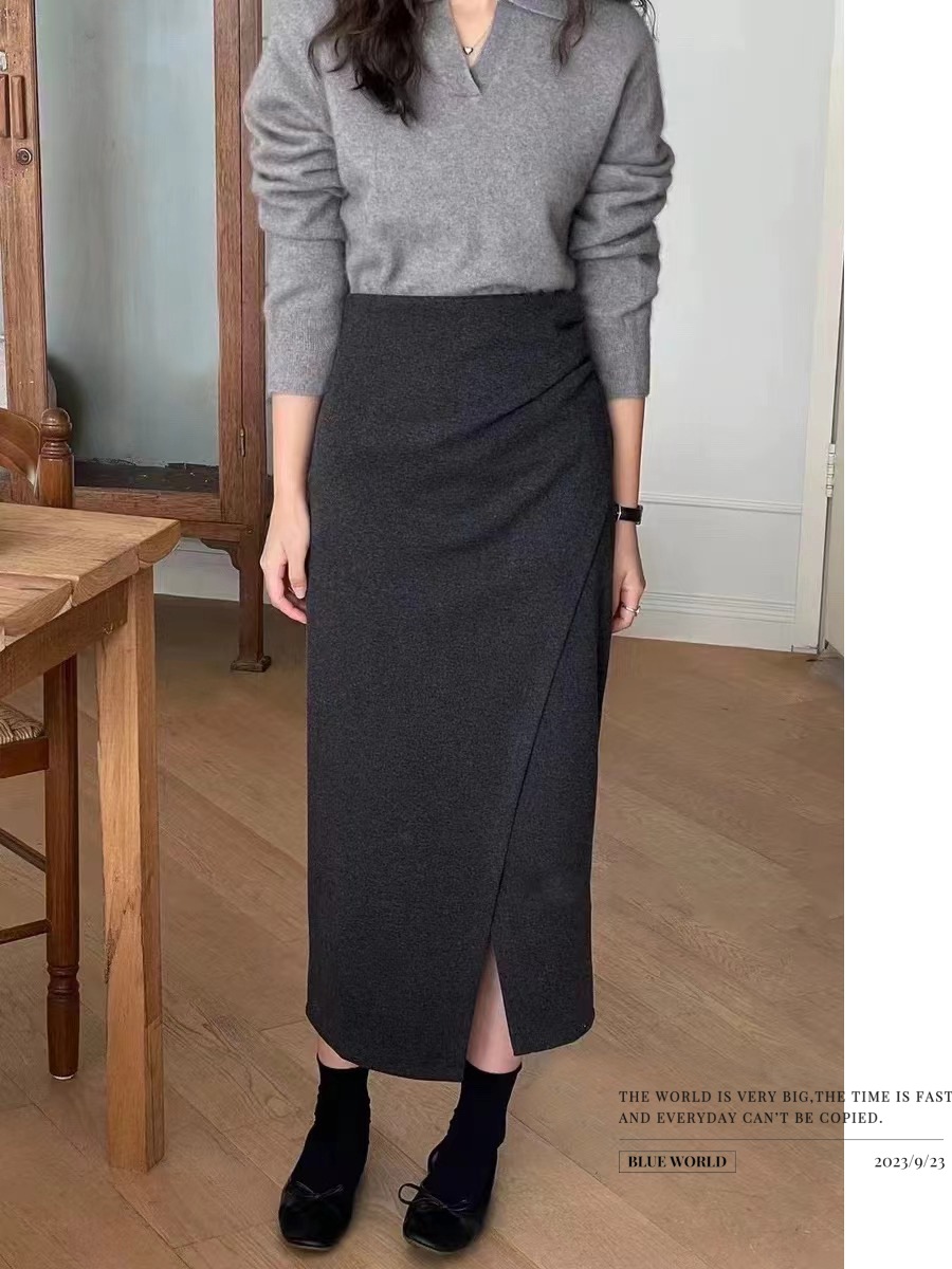 【法式褶皱包臀半身裙】高腰 秋冬新款 设计感修身显瘦 不规则开叉中长款