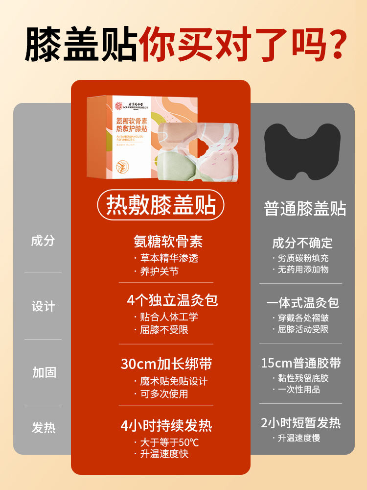 北京同仁堂 氨糖软骨素热敷护膝贴 艾草热敷自发热保暖贴关节贴6袋/盒