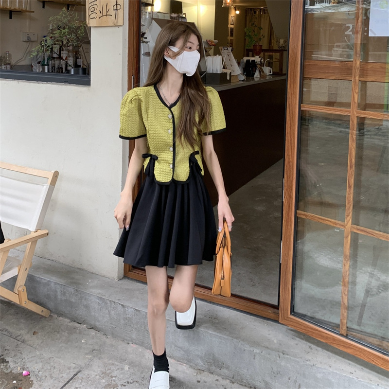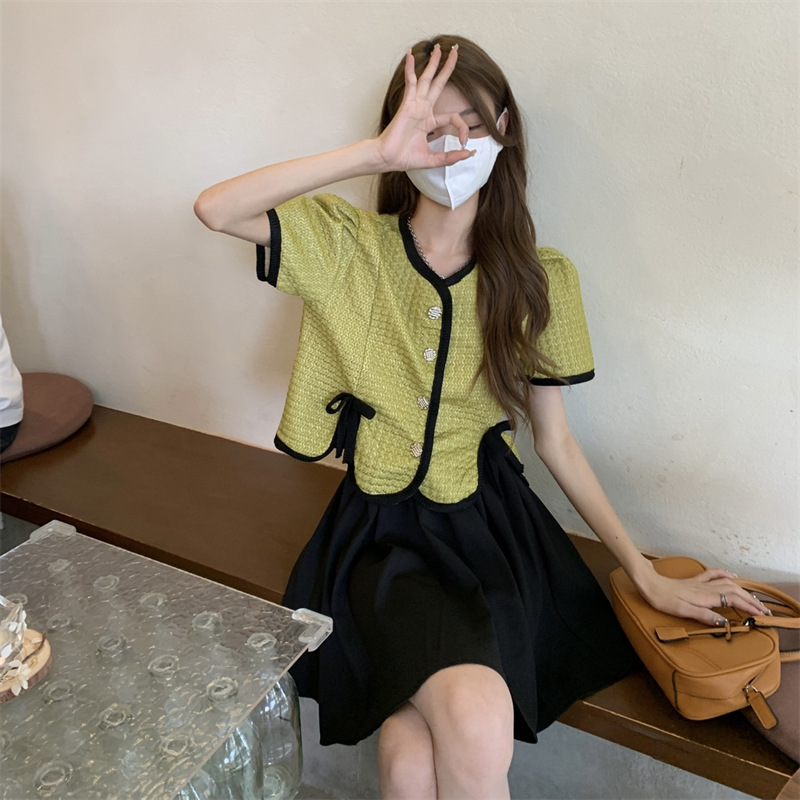 (清仓现货)【社群供X】可盐可甜炸街小香两件套装 涤纶80%棉20%