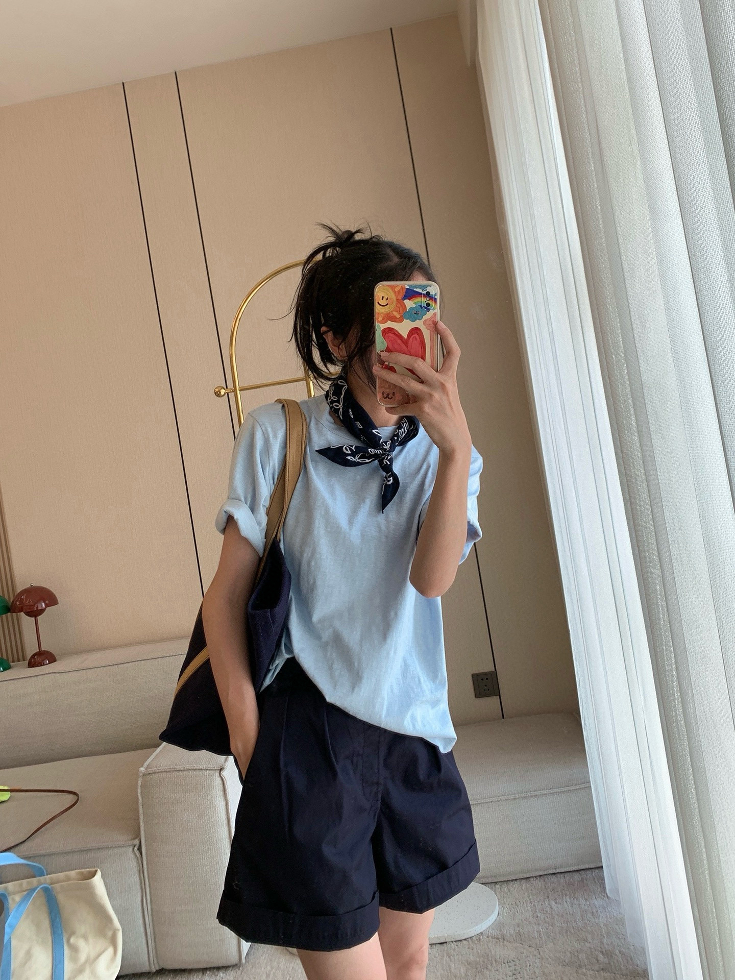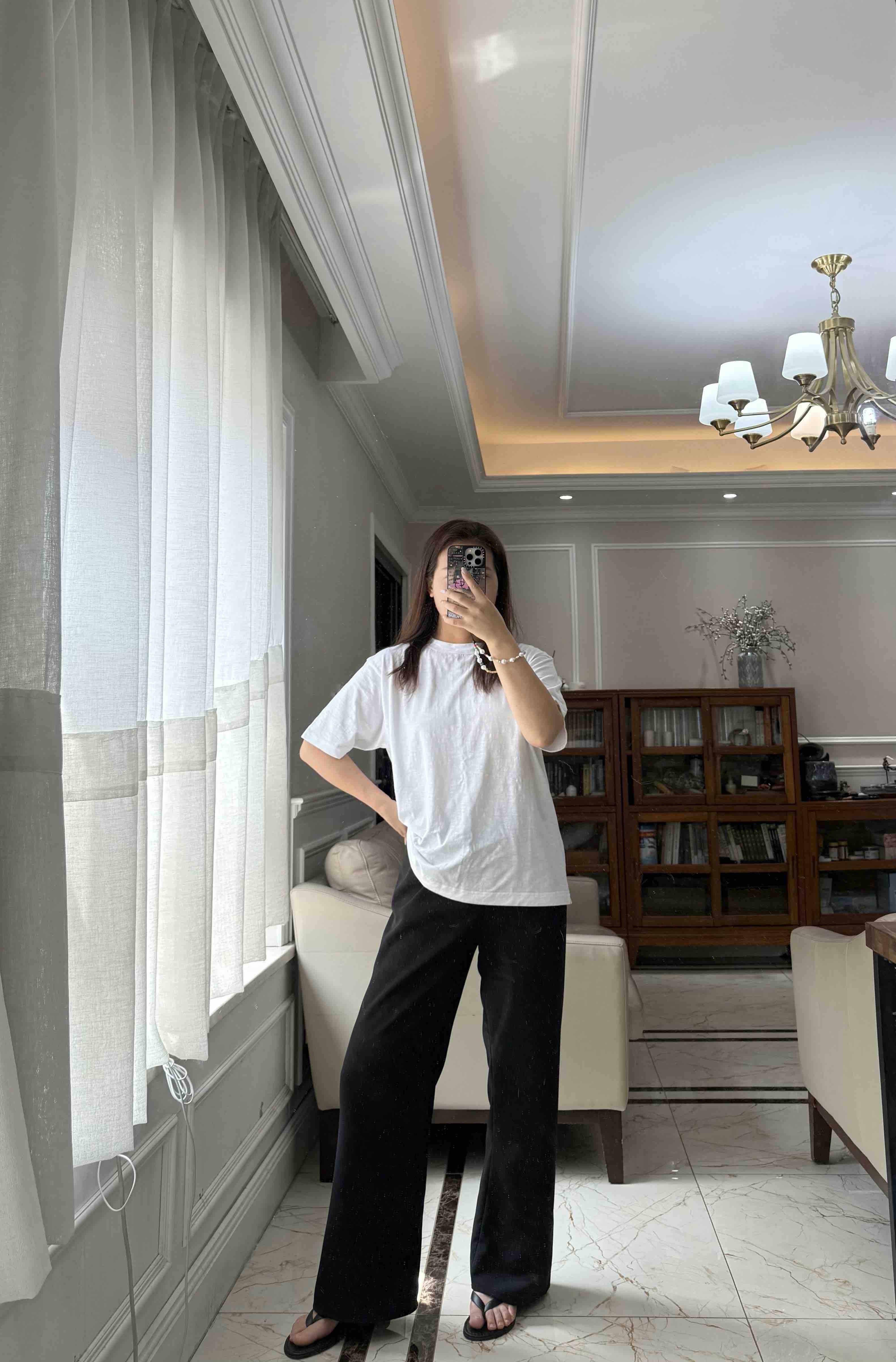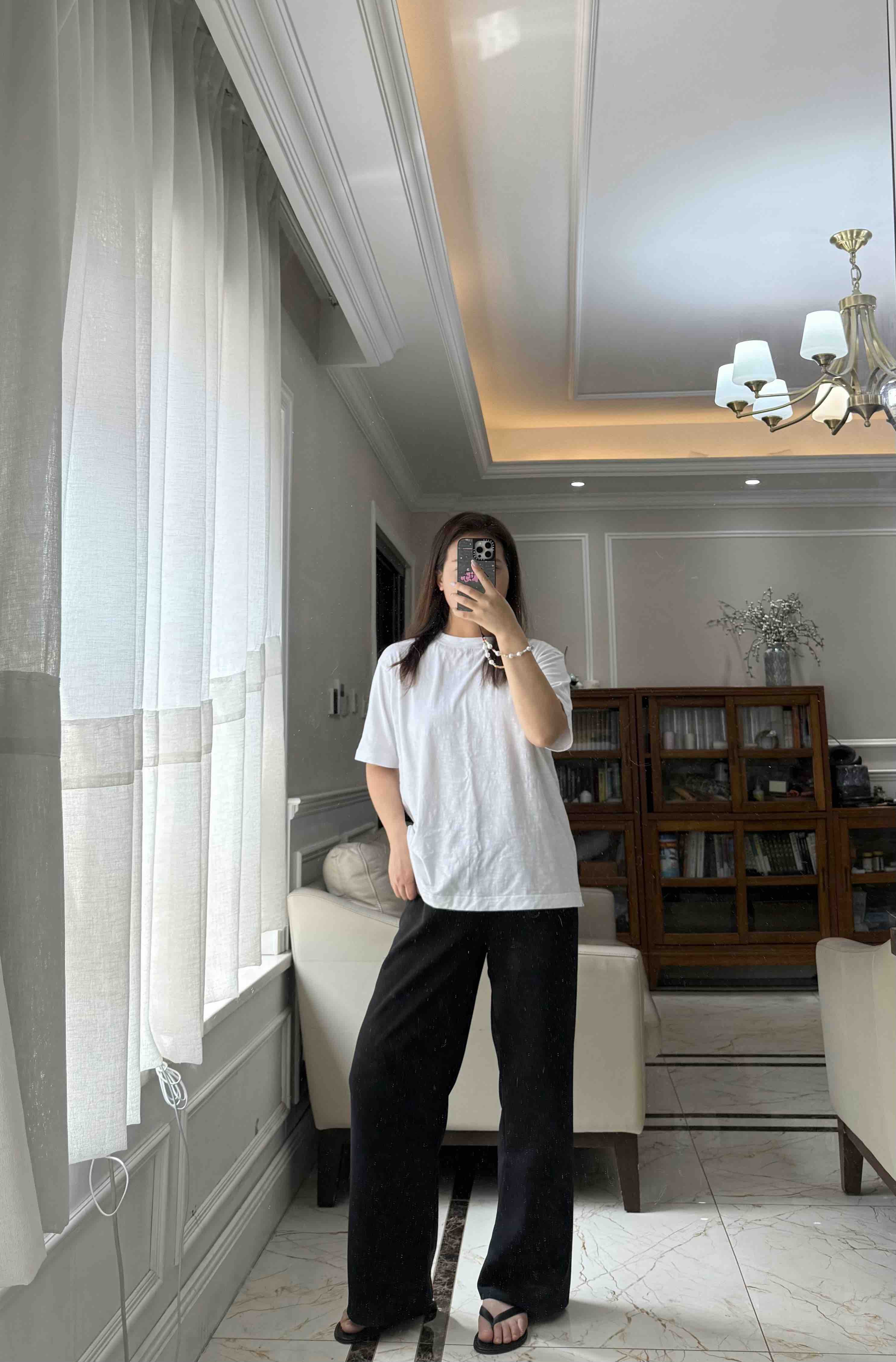 白色就是完全不挑的,配短裤长裤都好看,白色清爽的不得了,麻豆160 90 T都是s码效果。45R全系列,咱们算是玩明白了💡