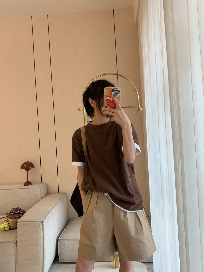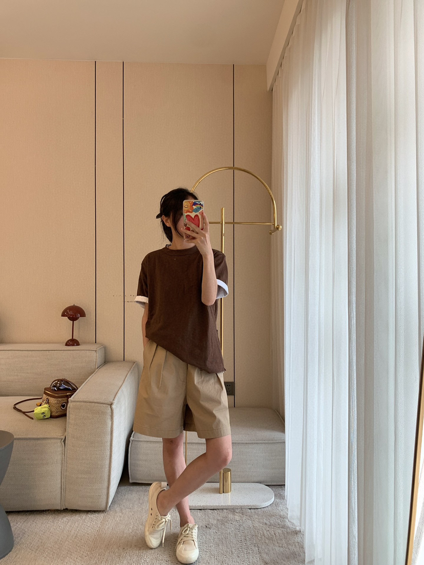 复古焦糖棕色,奶乎乎,今年流行色嗷,背后口袋有点小可爱,还有更多细节的设计也是其他T恤所没有的,双压线处理增强细节工艺感看似很简单的t恤,实则细节满满