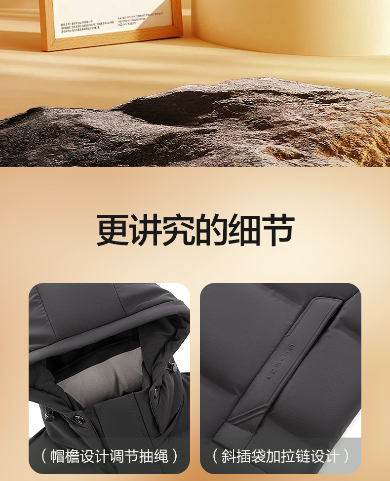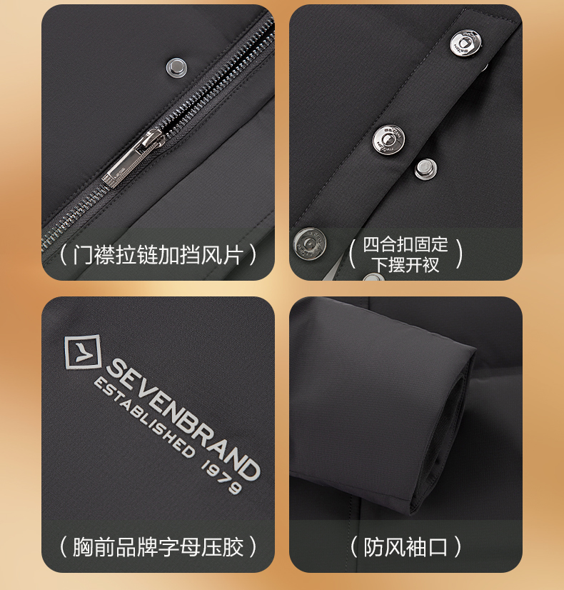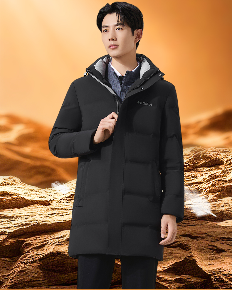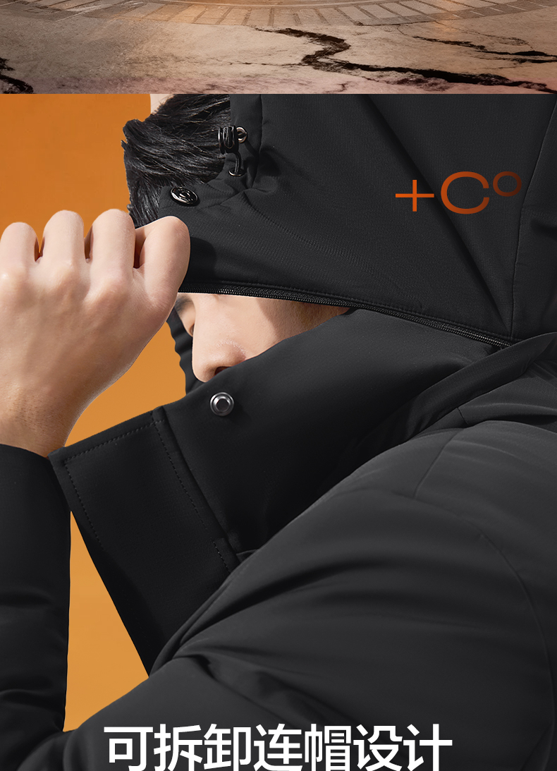 【黄金鲜羽绒】柒牌可拆卸连帽羽绒服男士加厚重磅保暖长羽绒外套129E70120