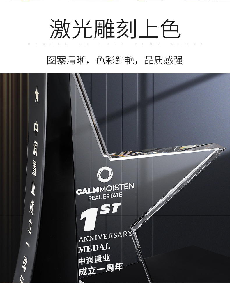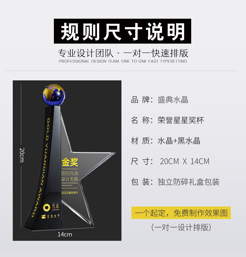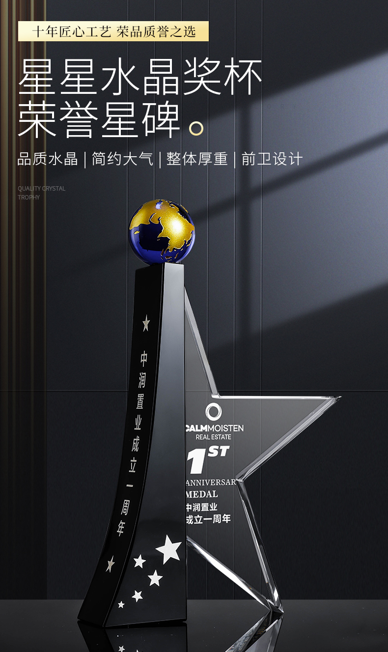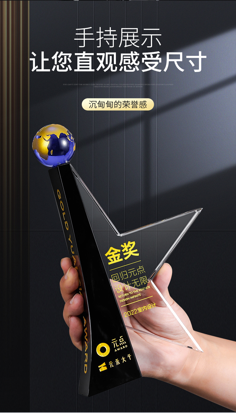 蓝色地球奖杯五角星新款2022创意奖品纪念品定制定做水晶刻字制作