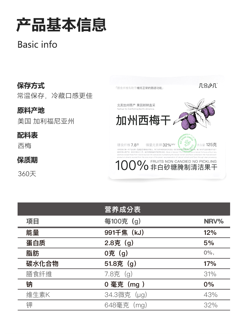几分之几 加州无核西梅干 125g*2