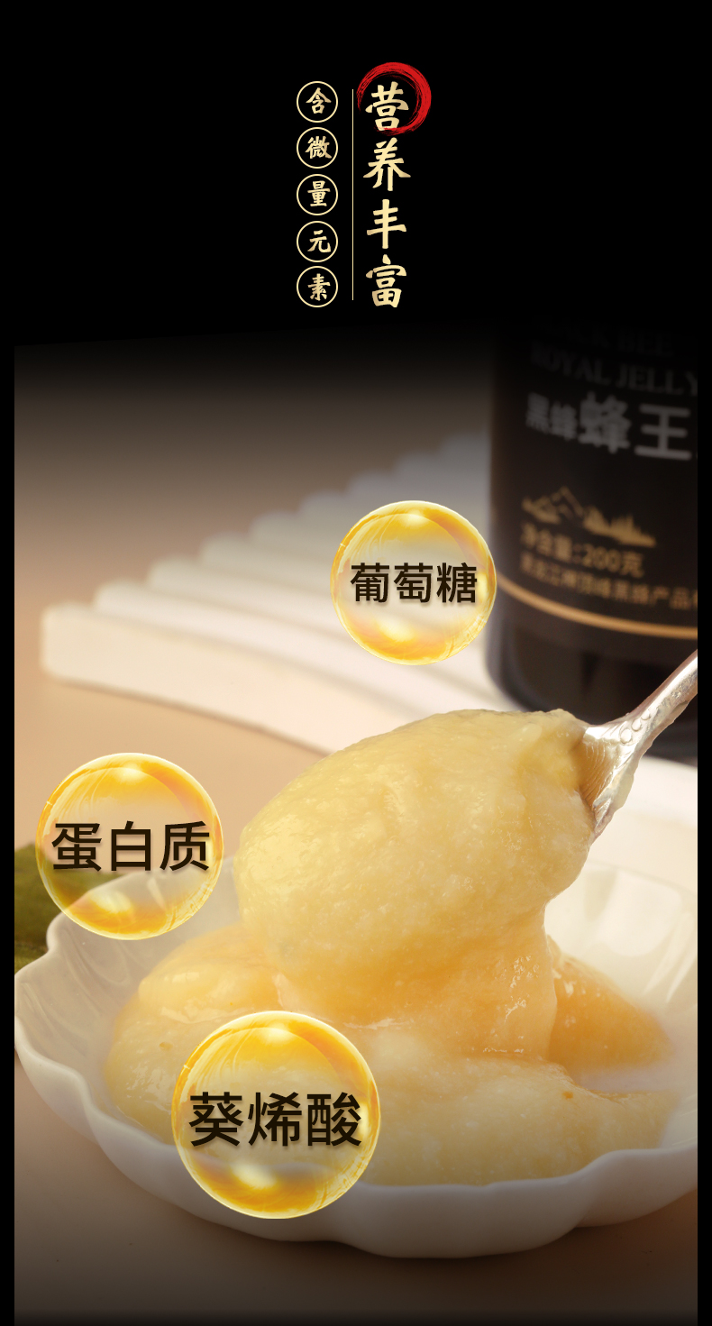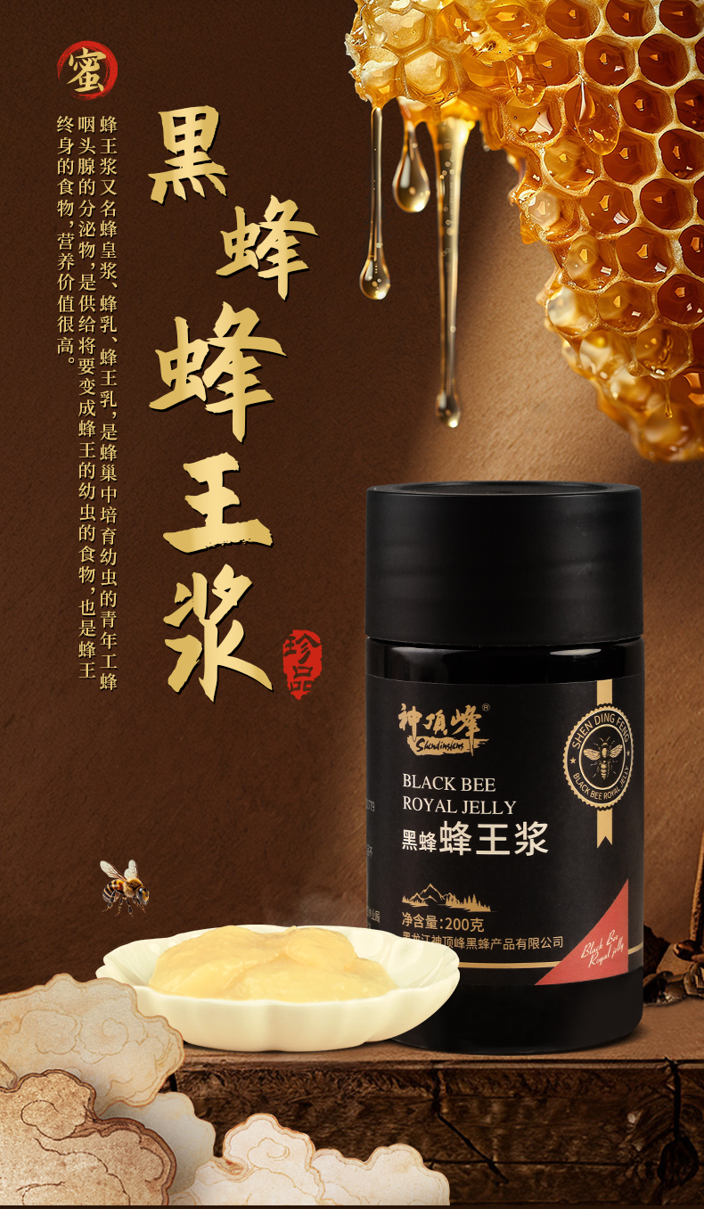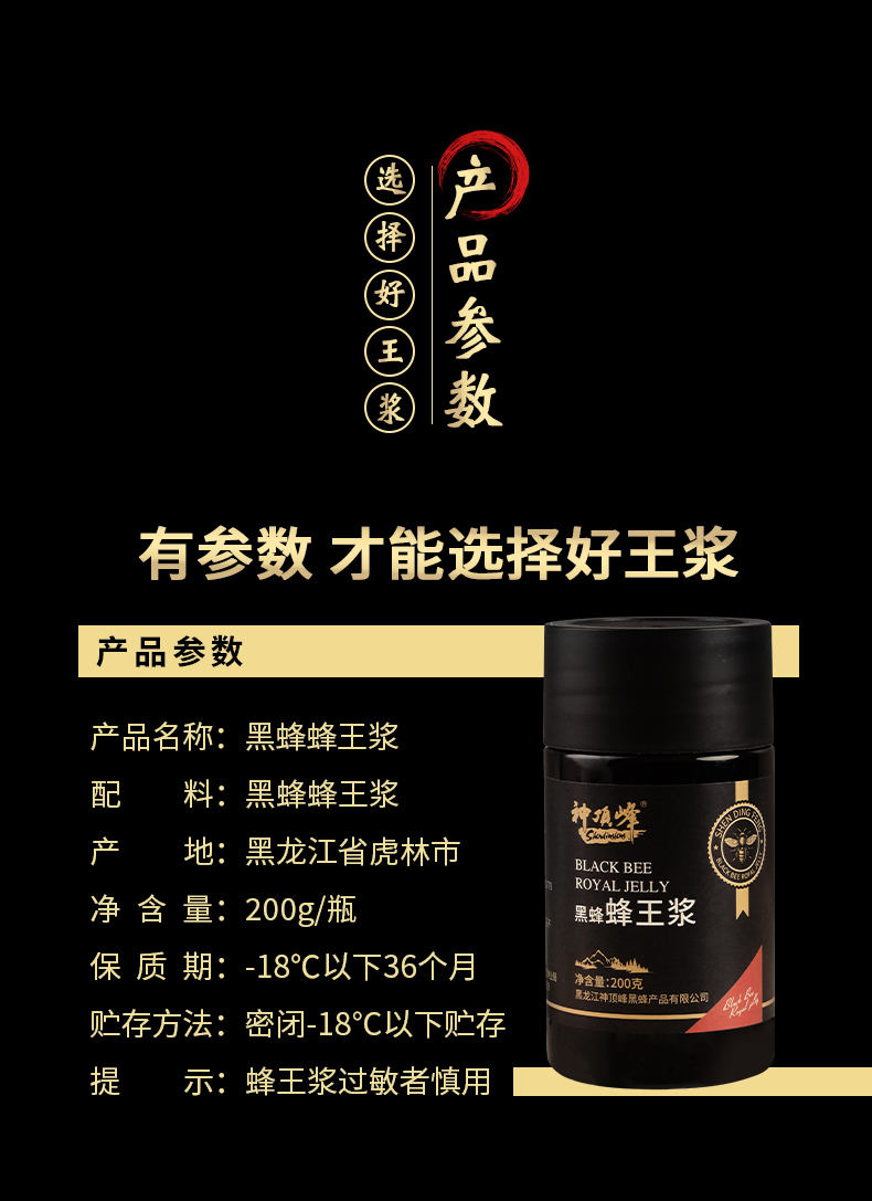 神顶峰 东北黑蜂椴树自然成熟黑蜂蜂王浆200克(欧盟有机认证)