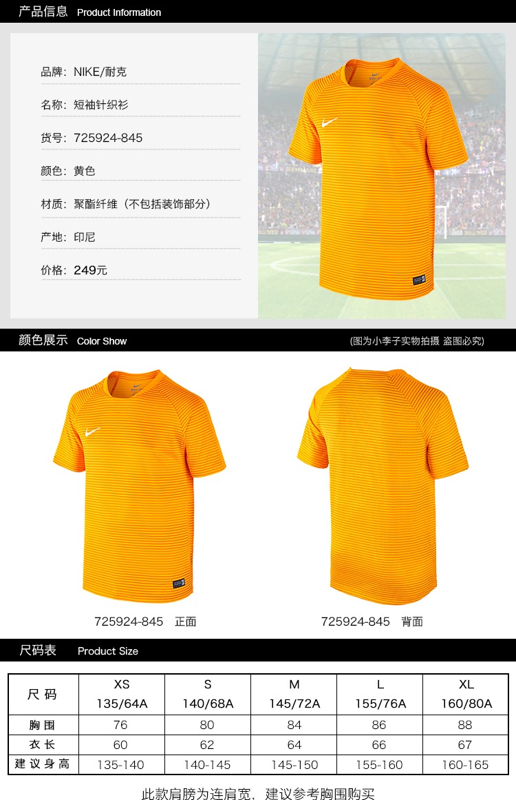 【3套以上,每满200减20】NIKE耐克儿童款足球服组队短袖T恤针织衫725924
