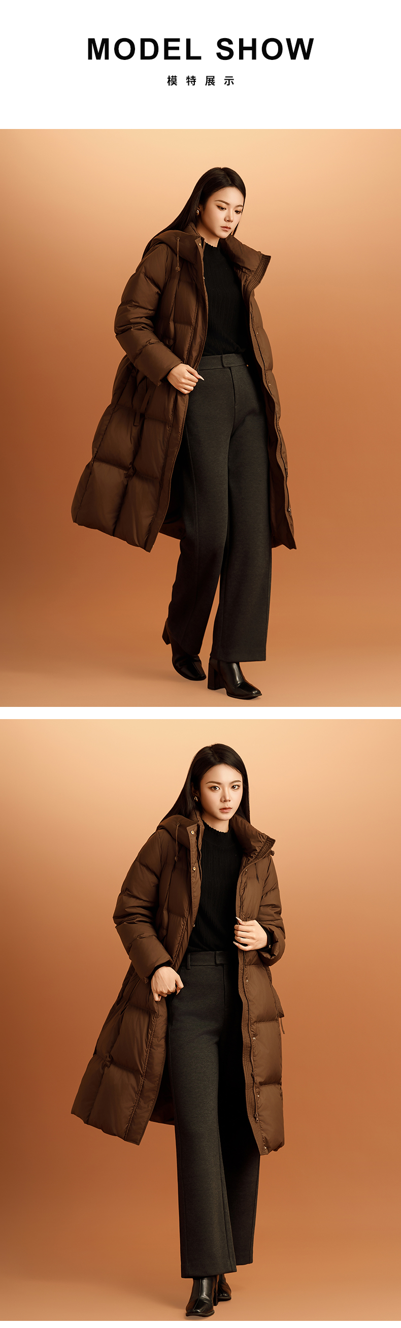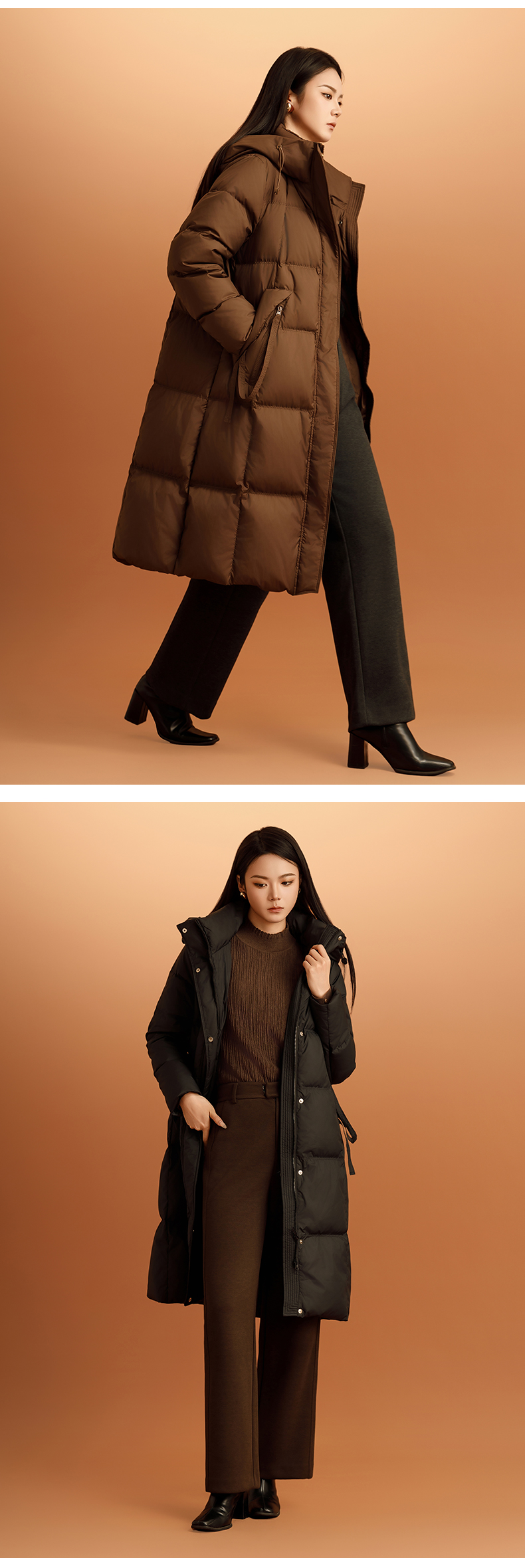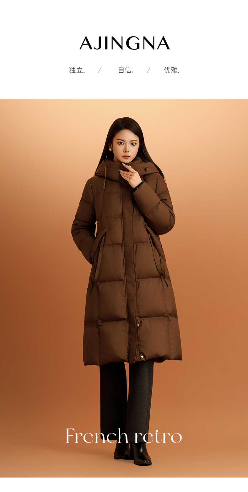 【商场同款】阿菁娜2024冬季新款蓄热抗寒连帽长款羽绒服A29D216059