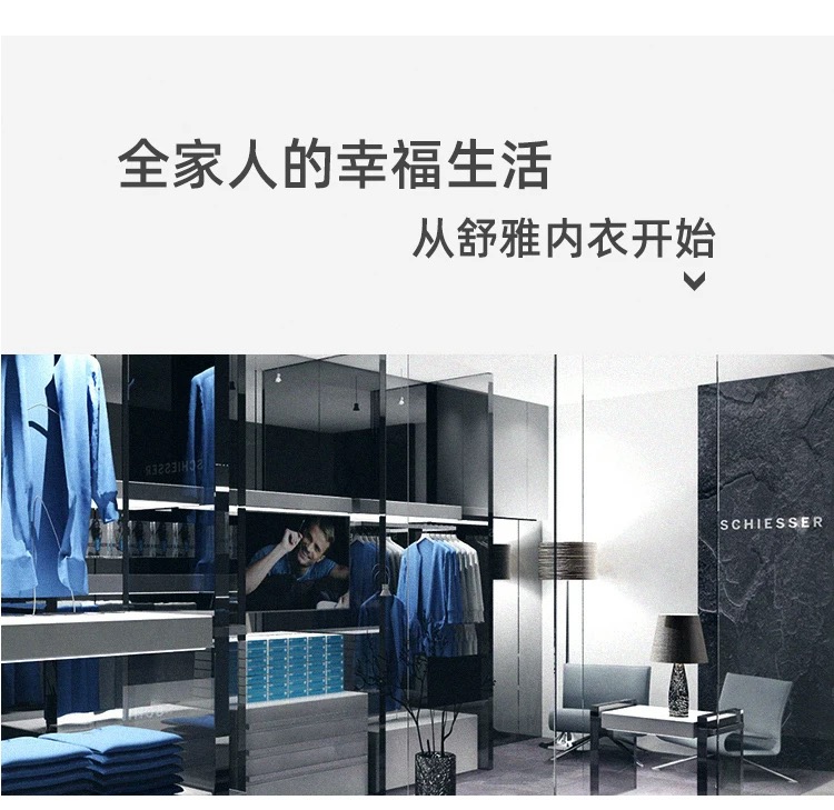 - 来自德国的SCHIESSER舒雅,专注做内衣一百四十余年,不遗余力的材料创新,因材而异的专业剪裁,健康环保的加工技术以及充满文化关注的时尚主题,做你认识之外的舒适内衣。