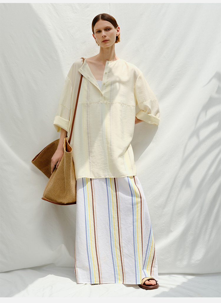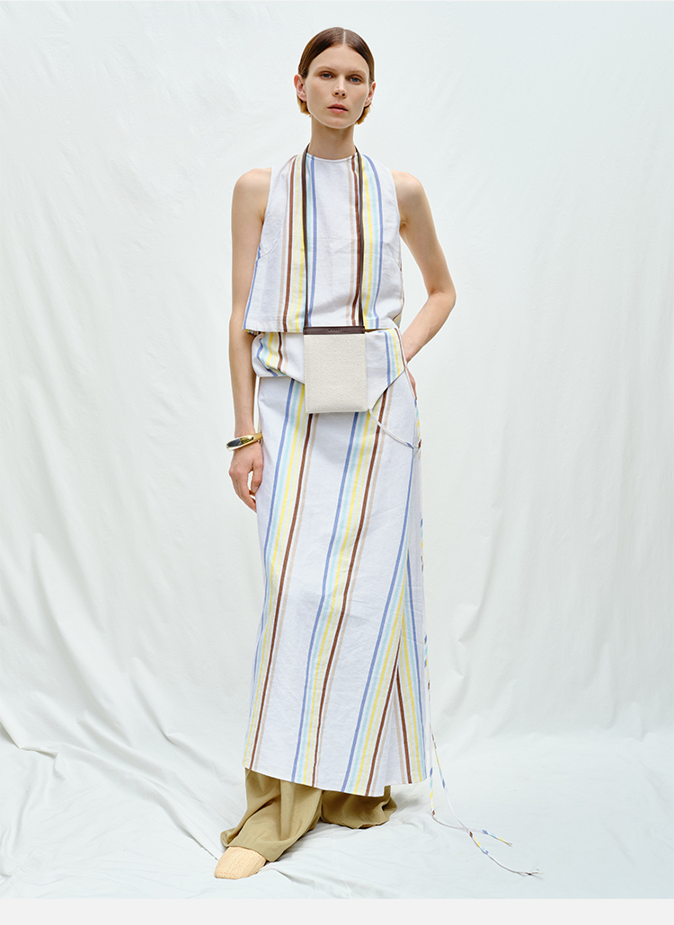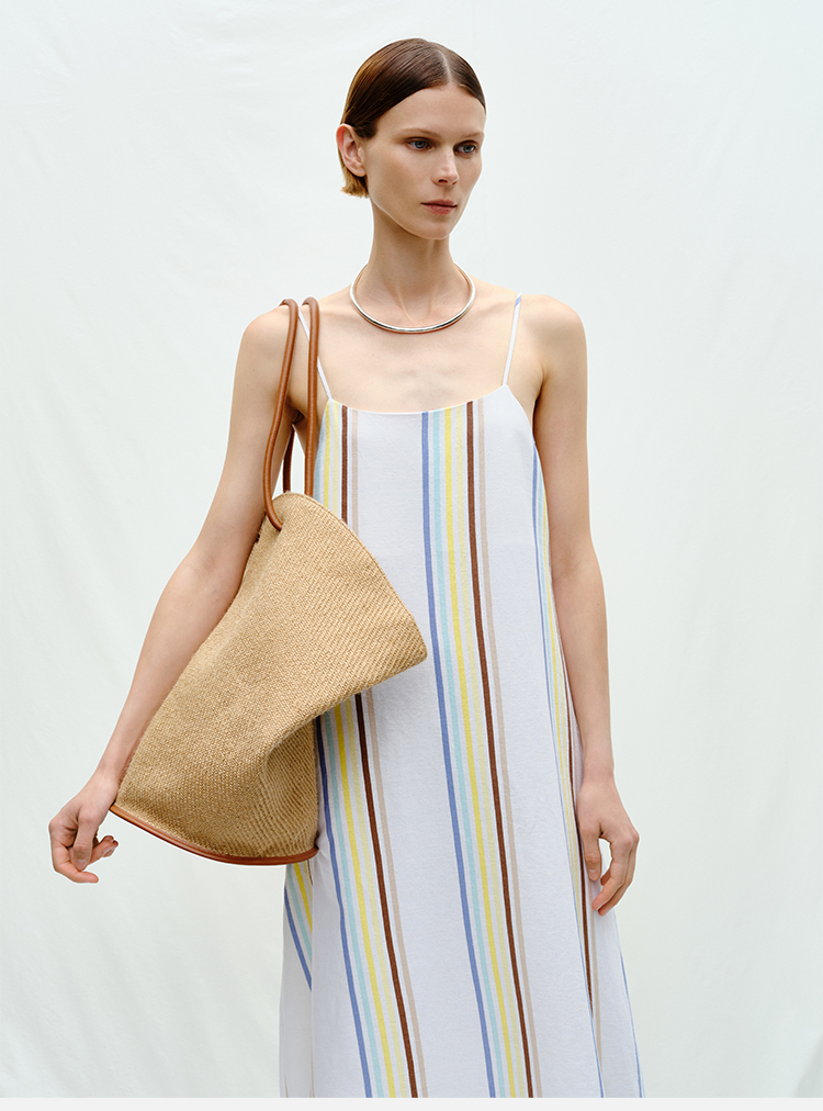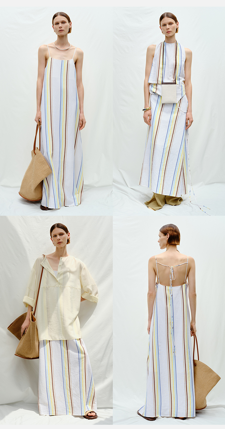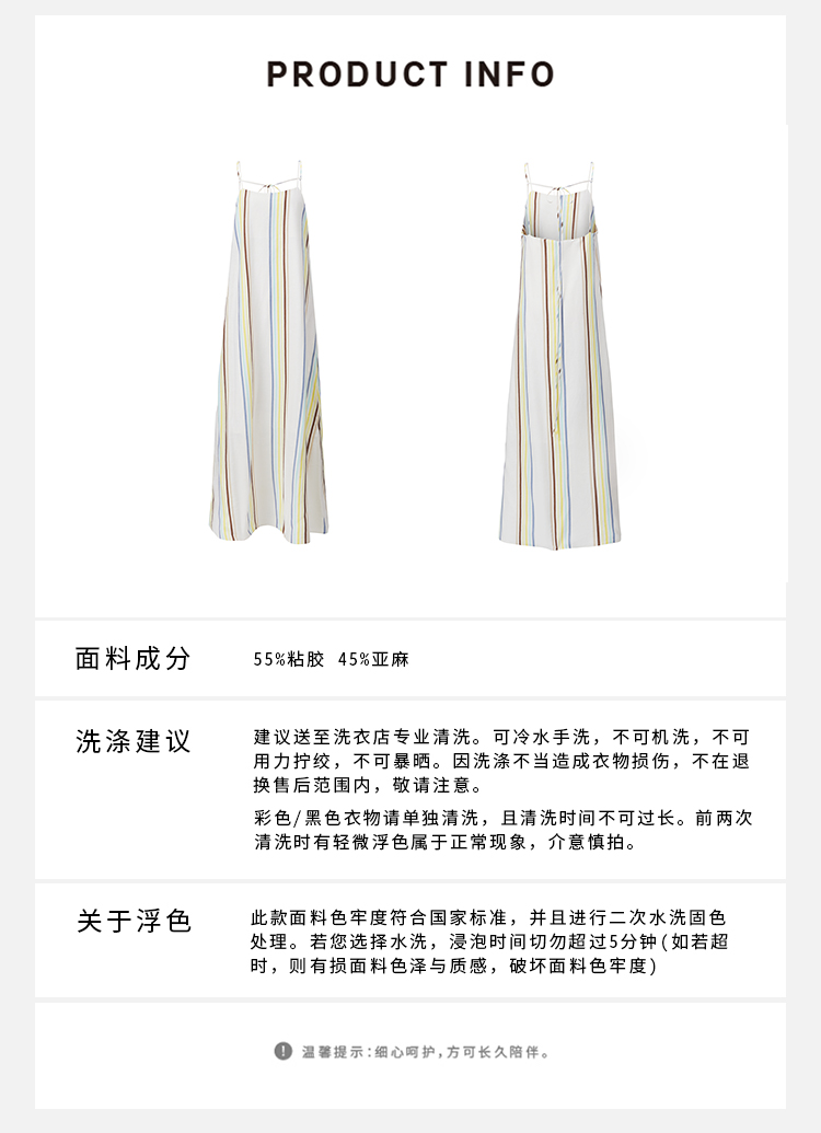 HIDEMI度假系列水洗阳光彩色条纹亚麻吊带连衣裙
