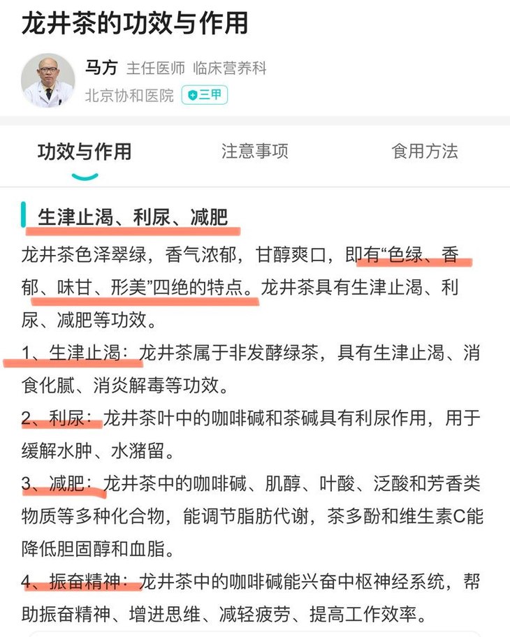 龙井茶之所以素有“绿茶皇后”之称 其原因之一主要得益于龙井茶的功效及作用 龙井茶是世界公认的六大最健康饮品之一 ✅富含茶多酚(消除自由基)氨基酸 ✅咖啡碱 维生素 矿物质(氟、锌、锰、钙) ✅消肿、抗氧化、辅助减肥