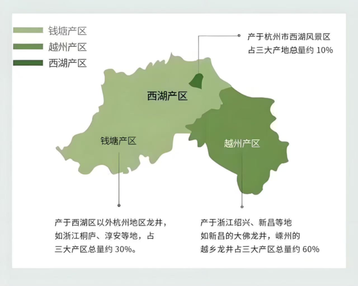 江南春几许 清风一盏茶 中国人的春天,是龙井茶。 自古来,我们便将万顷 春色妥帖放入一盏龙井茶香里。 初至茶园便会与满目绿芽 扑鼻清香撞个满怀。 核心产区 钱塘产区 因其独特的地理位置 特有小气候环境和特定的土壤条件 造就了出产的龙井茶香气悠长 口感醇甘留香,层次感丰富,韵味深厚。