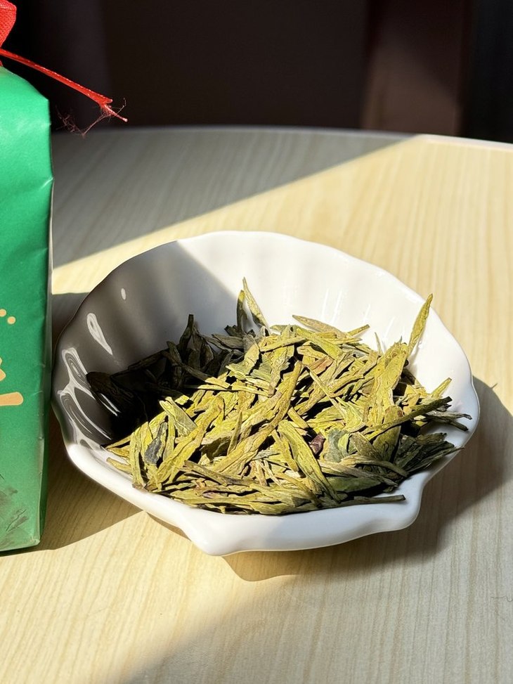 龙井茶,名副其实的早春第一口鲜。 品春之龙井茶,如品明月清风,掸去一身风尘。 营养物质含量高,芽头饱满,芽叶匀齐肥壮。 扁平的干茶条,挺直修长“一旗二枪”之状。 色泽黄翠圆润,接近糙米色,细看茶身有白毫。 那茶汤颇淡而明亮,略见嫩绿,尤见西湖水。