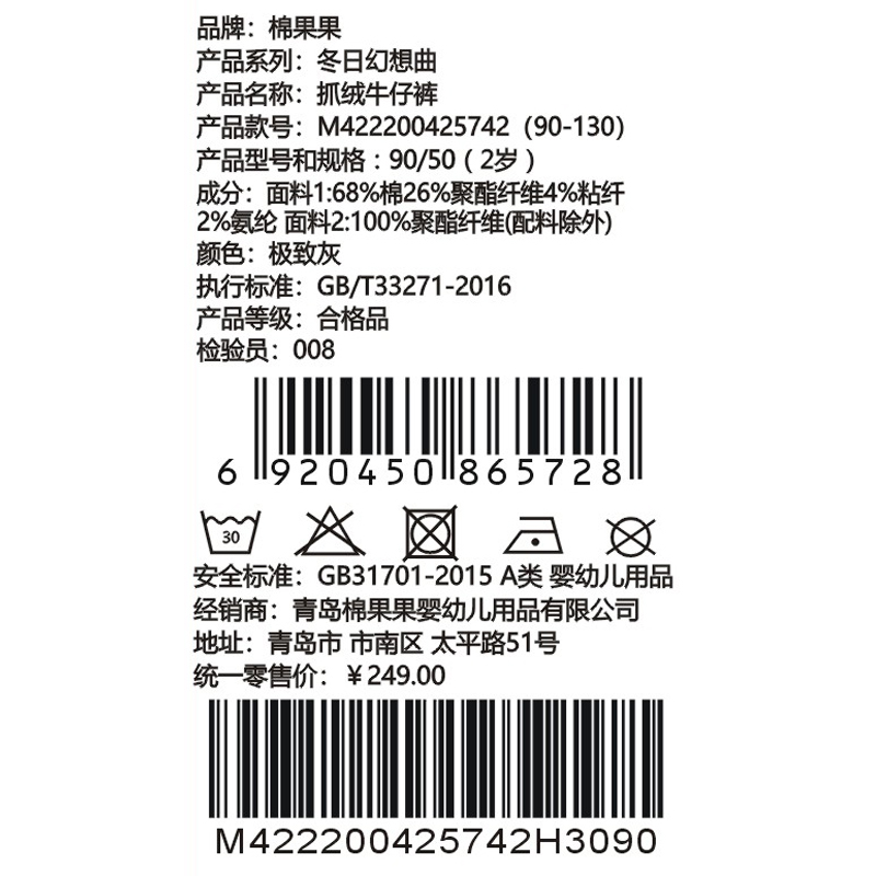 | 裤长 | 50 | 55.5 | 61.5 | 67.5 | 74 |