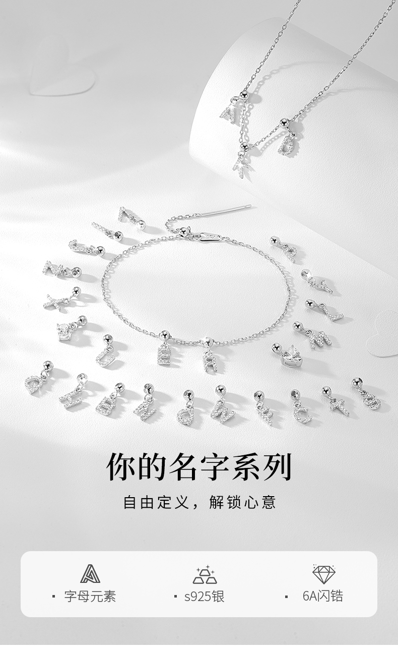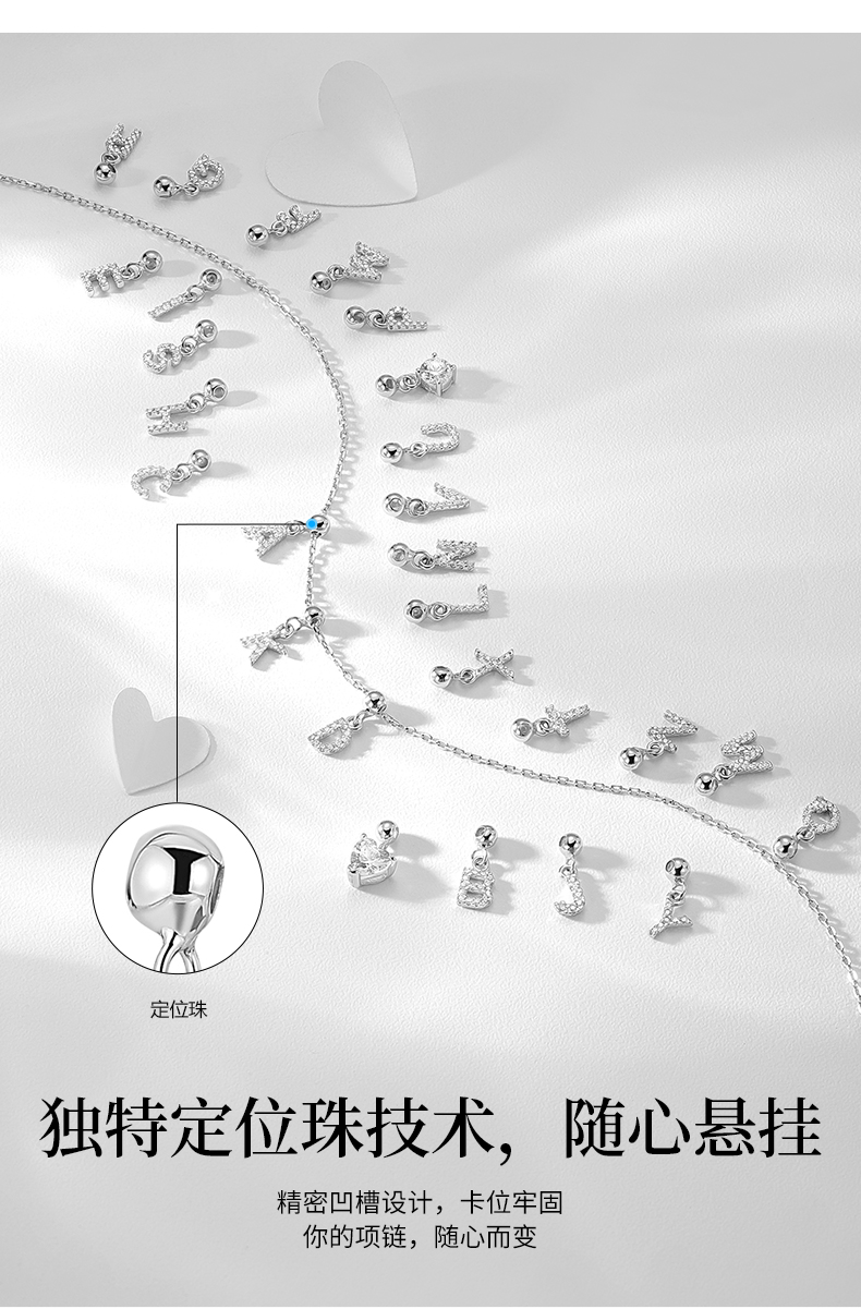 卡蒂罗KADER 你的名字系列 925银小众原创设计简约26字母专属独特爱可自由DIY锁骨链恋爱告白钟爱久久灵动璀璨闪耀 项链 银色