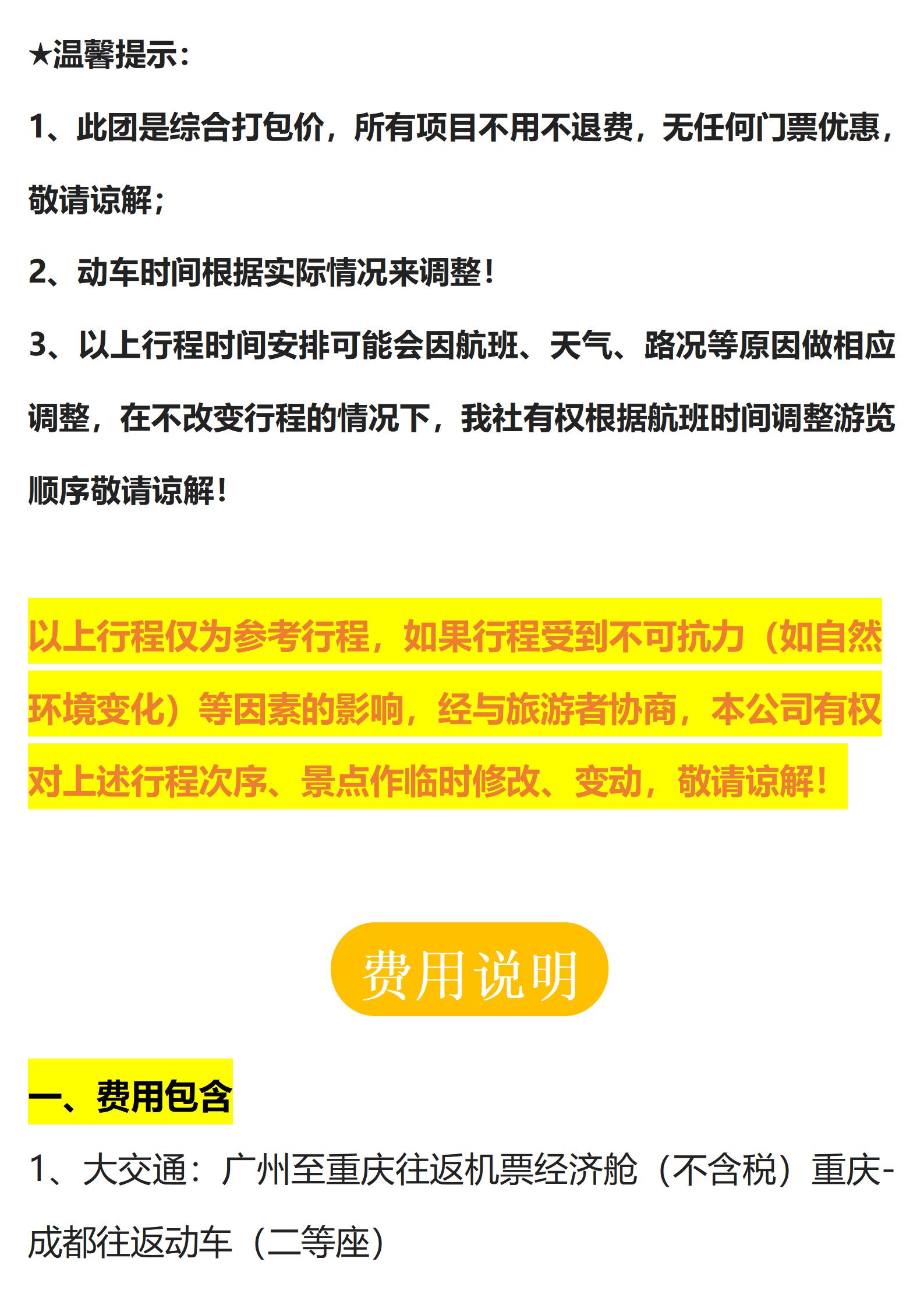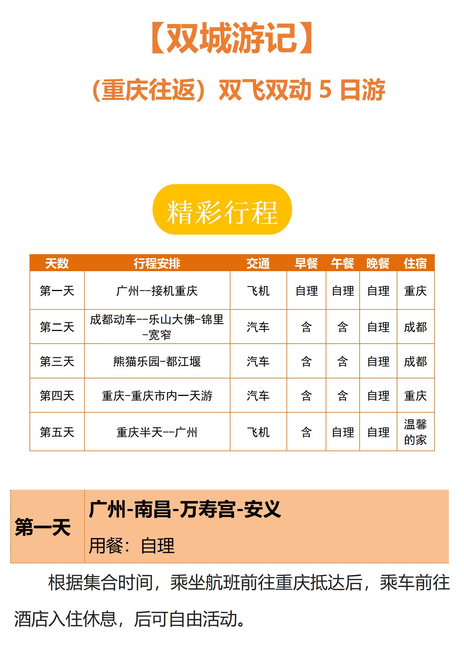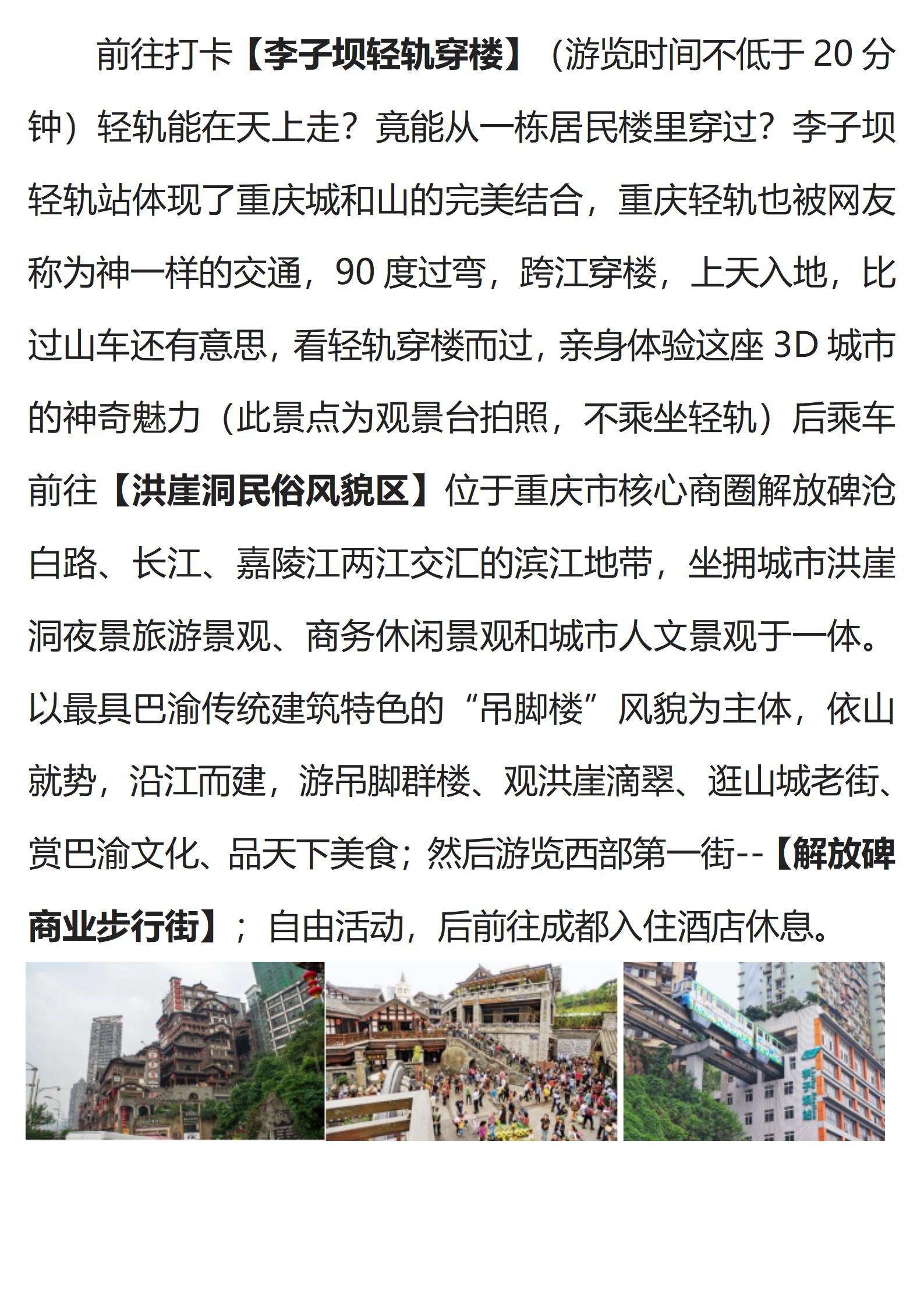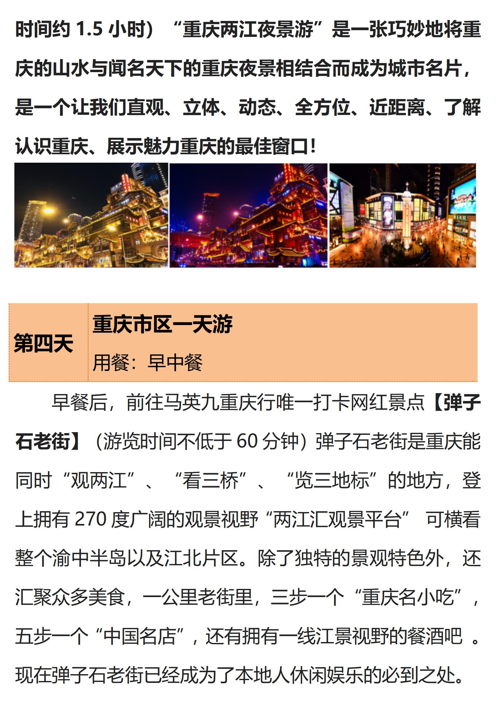 【双城游记】 (重庆往返)双飞双动5日游