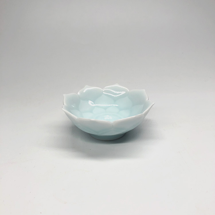 刻瓷青釉重瓣莲花碗是由薛继业老师设计的,整一个瓷碗似一朵盛开的莲花,十分生动。