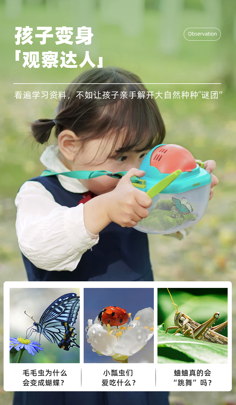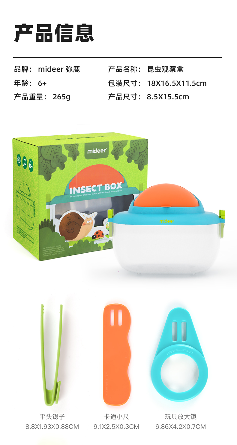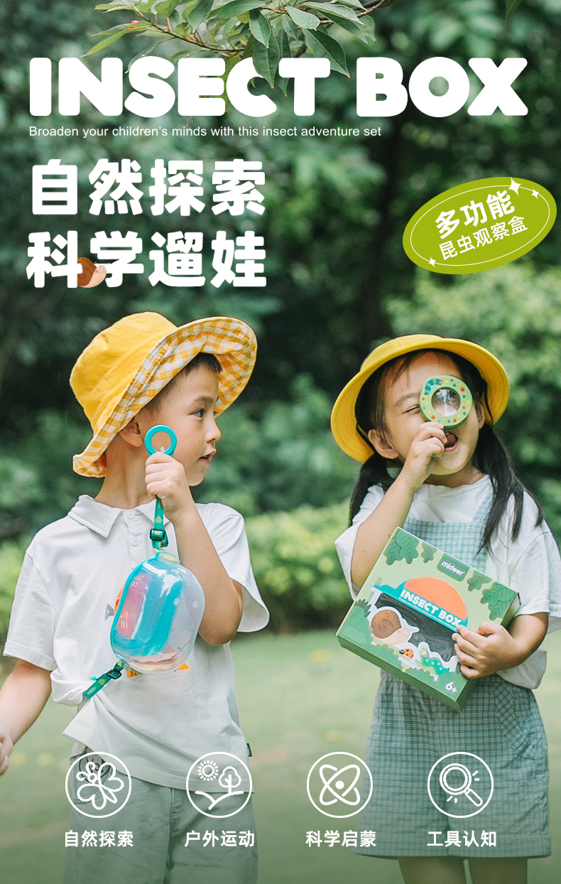 mideer儿童昆虫观察盒生物实验放大镜开学礼物观察器捕捉科学玩具