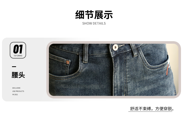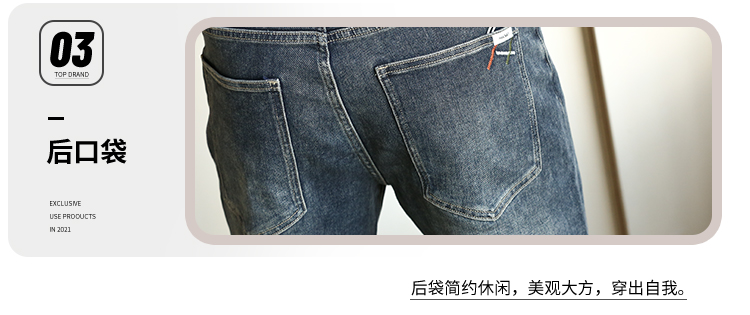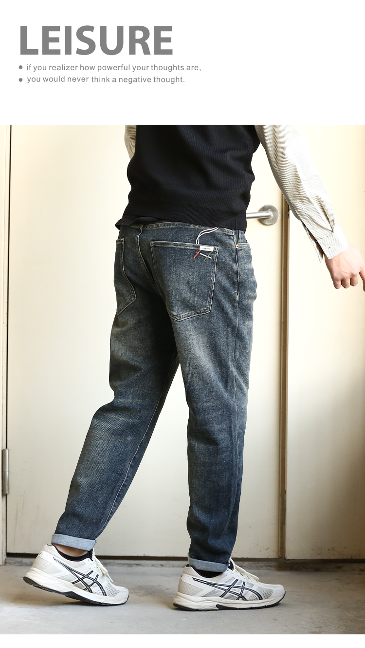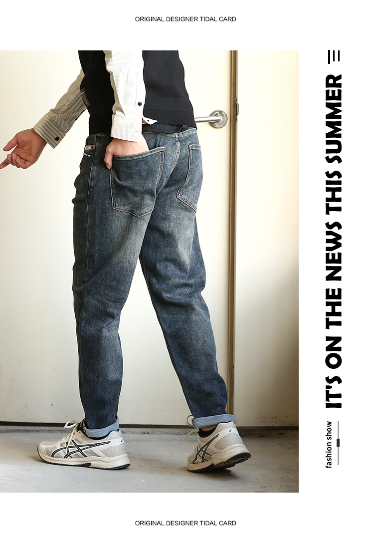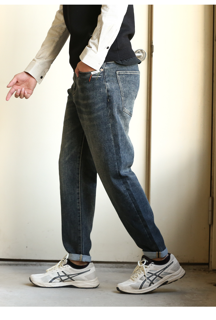 DRONKOO 2024 正常腰前左袋红绿白折线刺绣中厚牛仔长裤