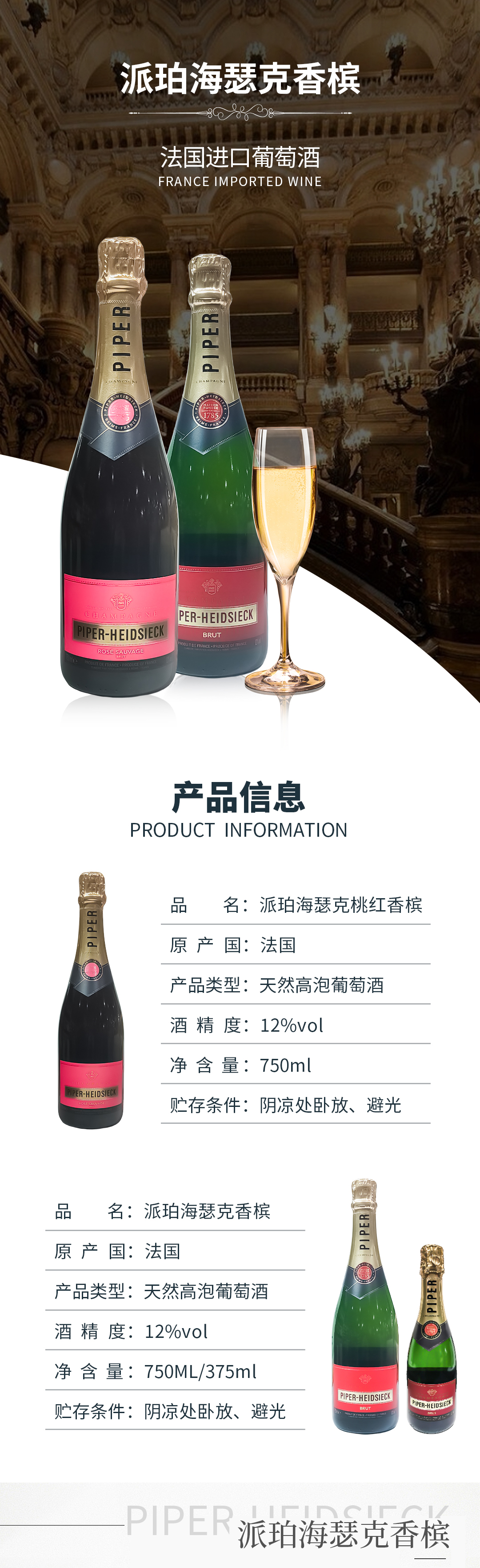 法国进口派珀海瑟克香槟I桃红香槟375ml-750ml