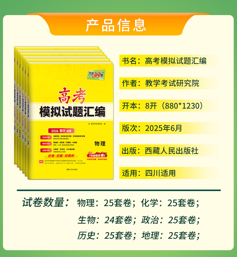 天利38套 2026四川高考模拟试题汇编 物理 化学 生物 政治 历史 地理