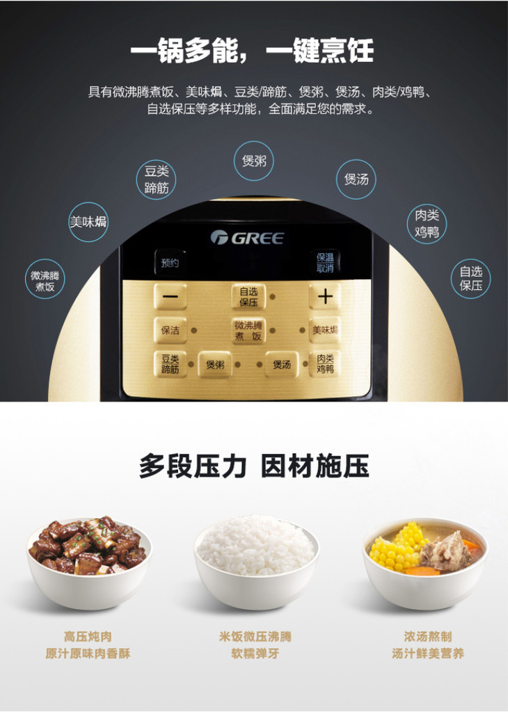 格力电压力锅 5L 一锅多能 一键烹饪 CY-5016Sc 黑+香槟金色