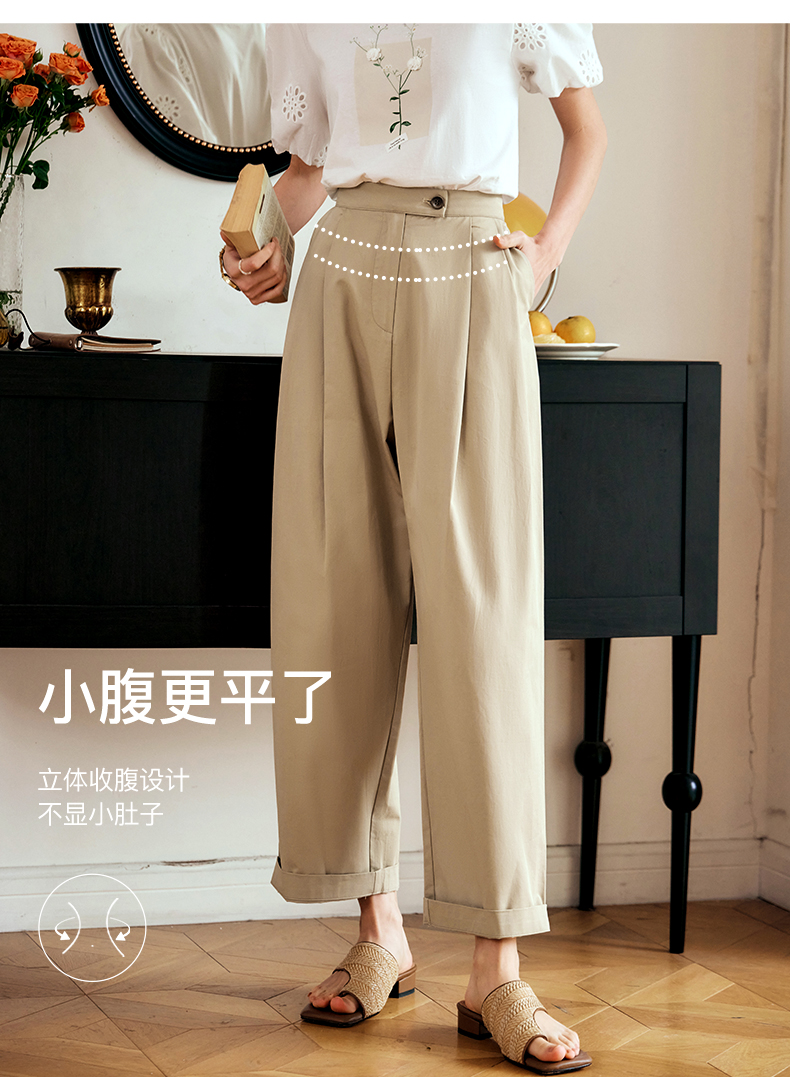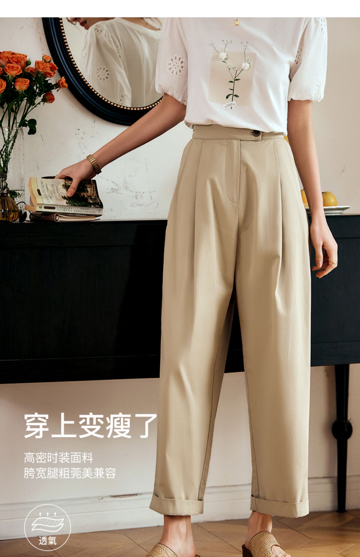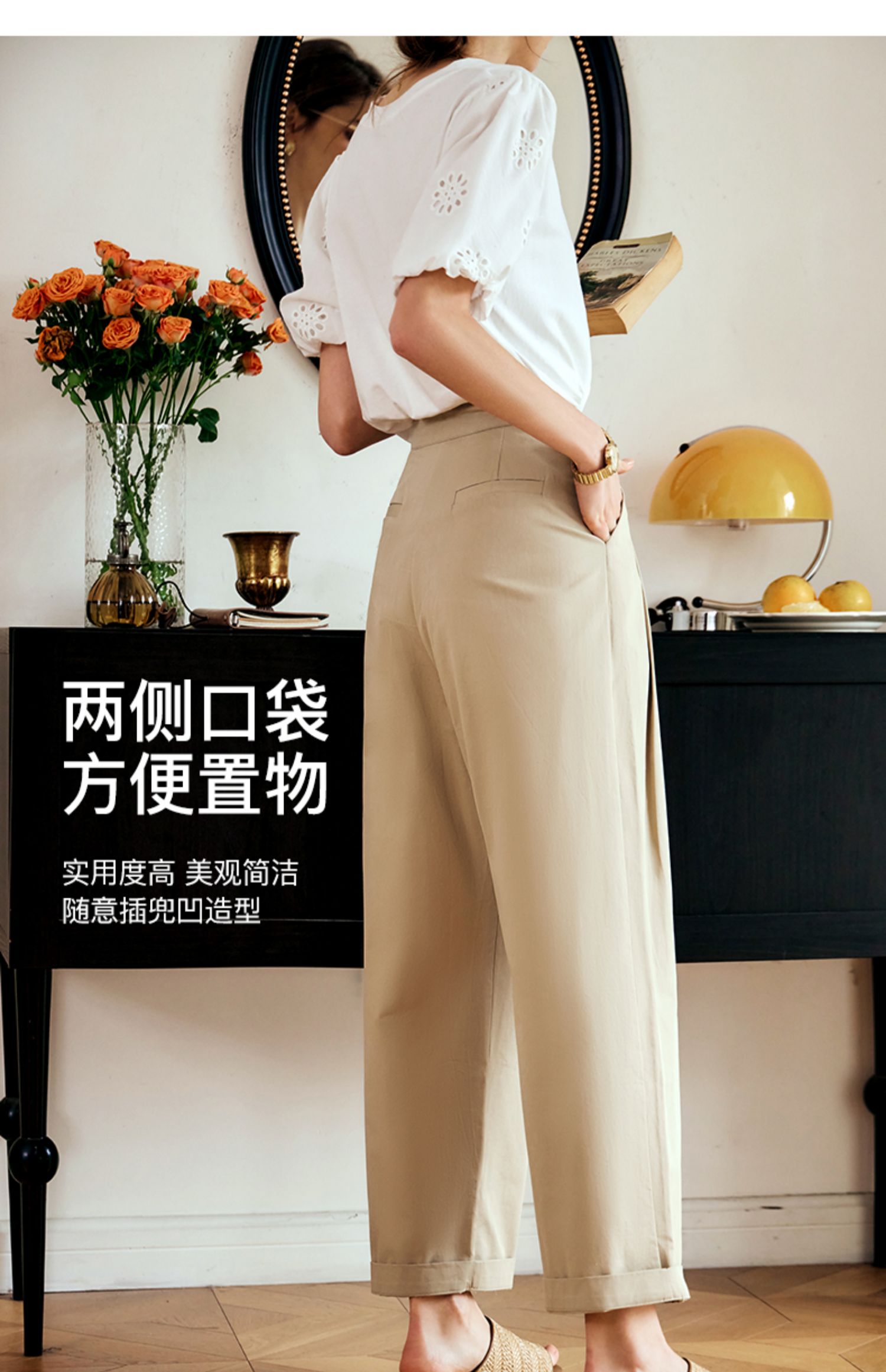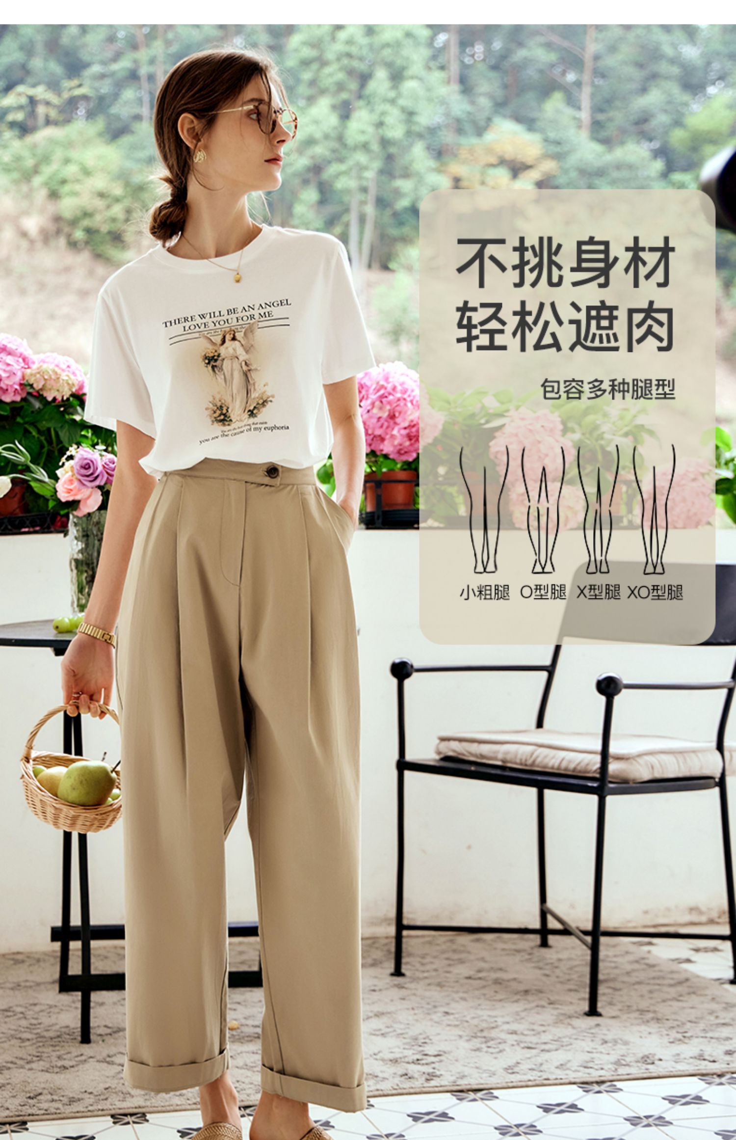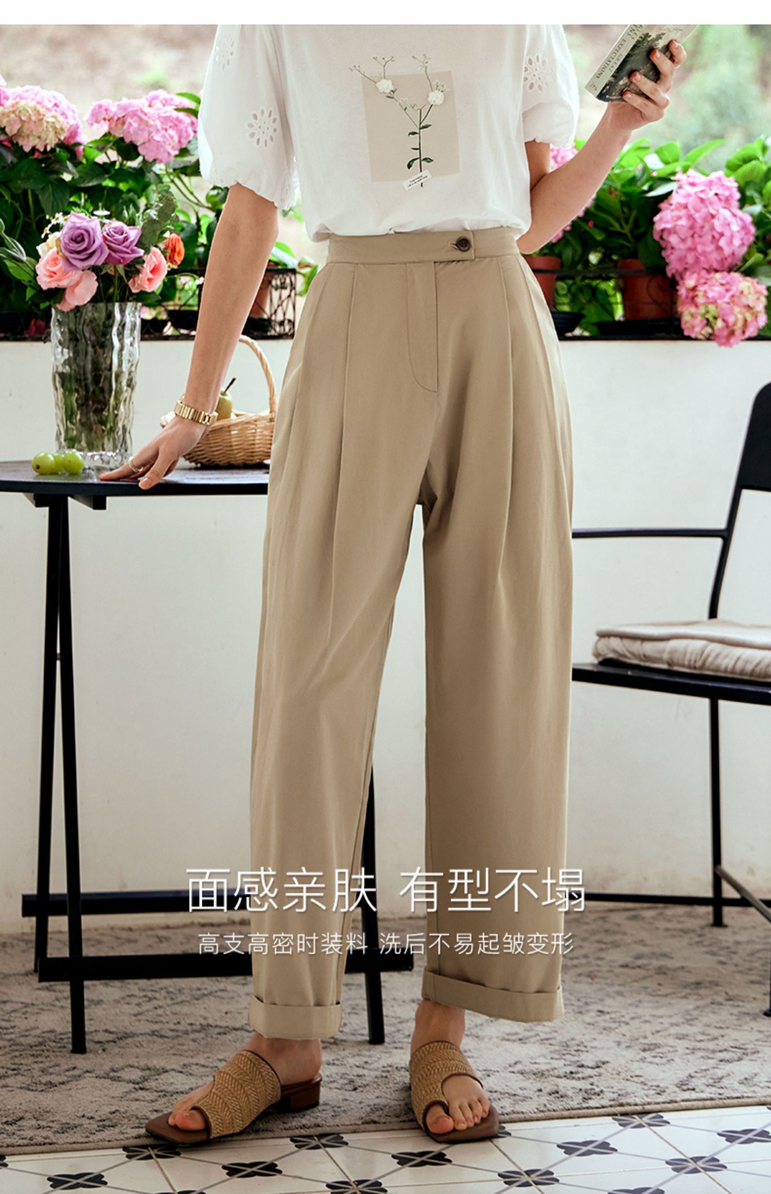 OLrain欧芮儿卡其色休闲裤女夏季2024年新款通勤百搭小个子萝卜裤