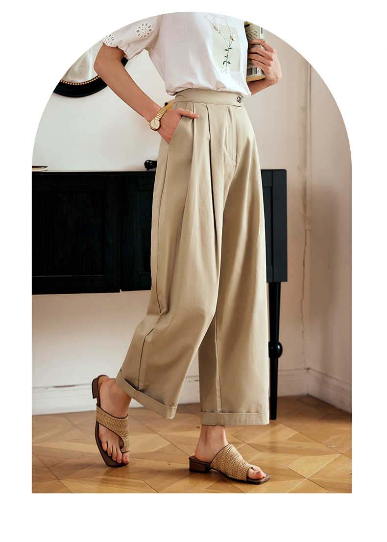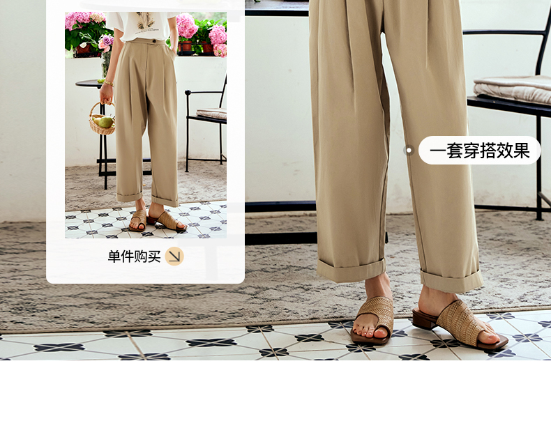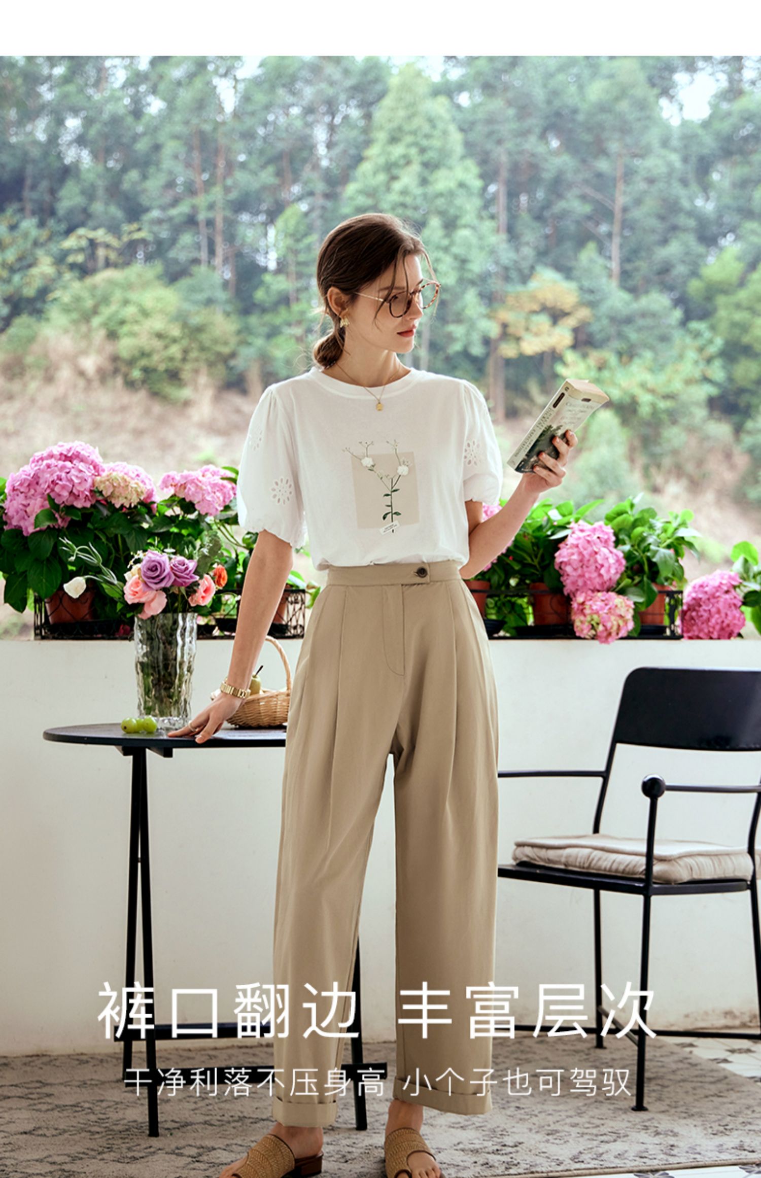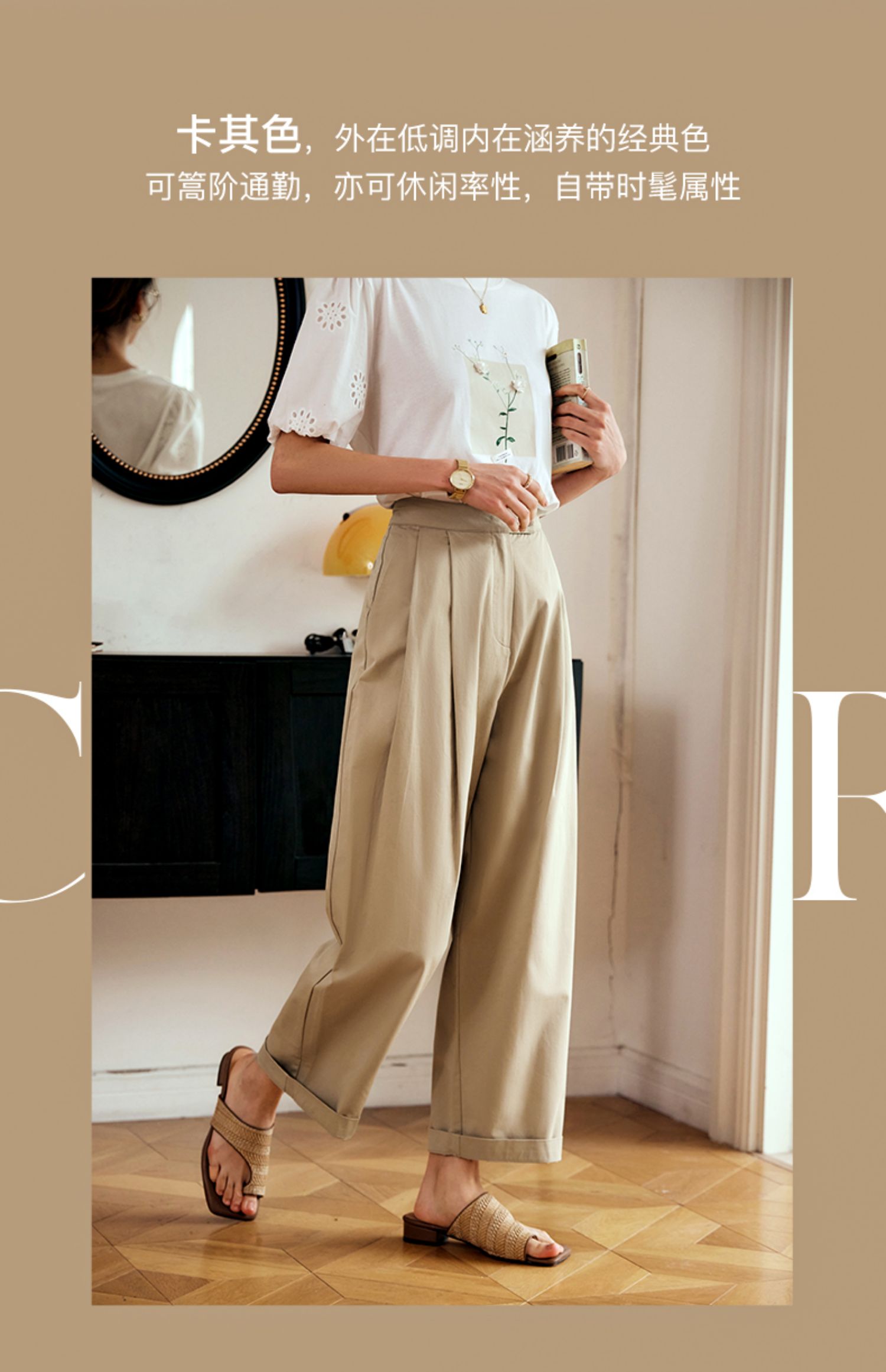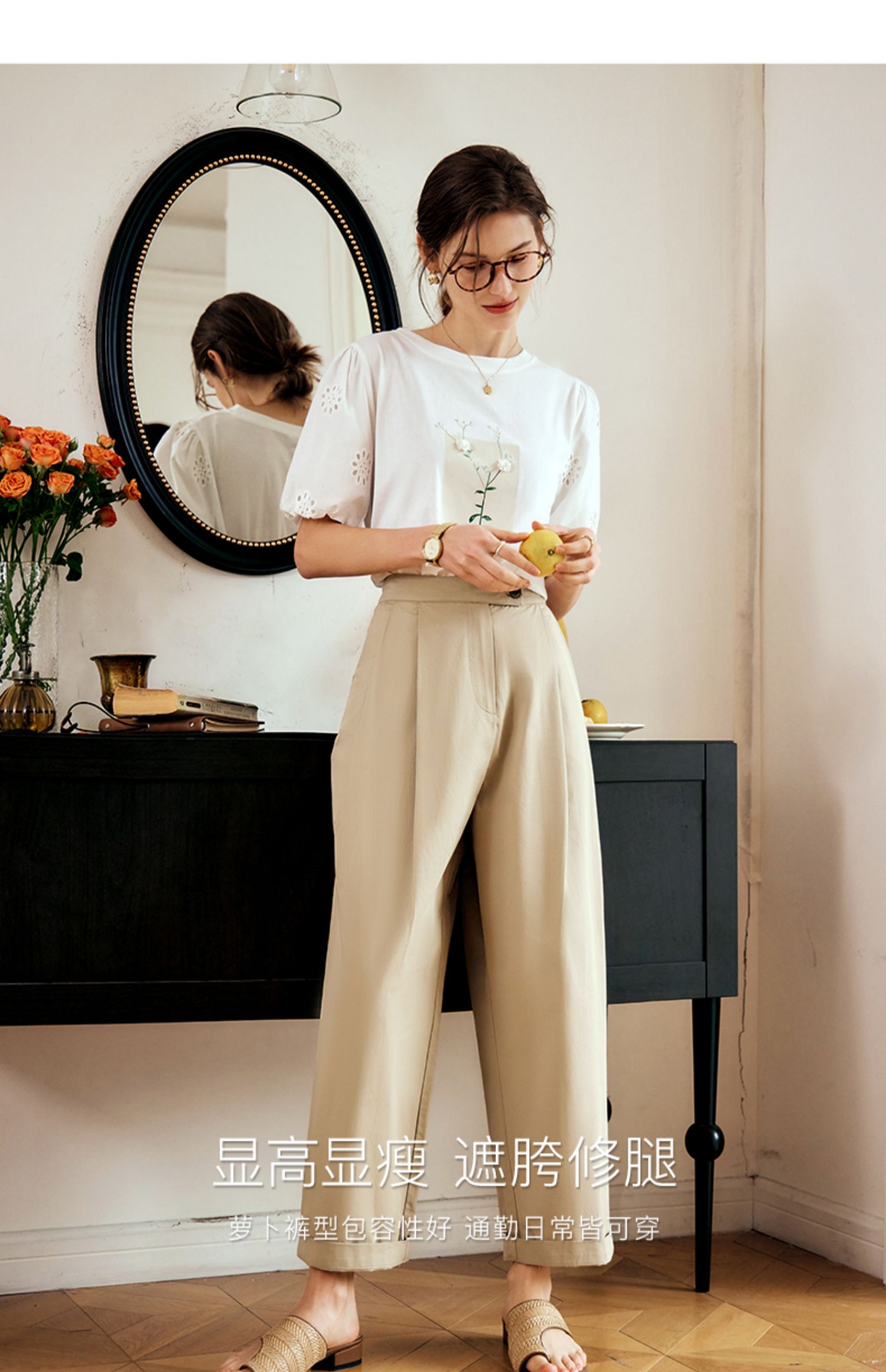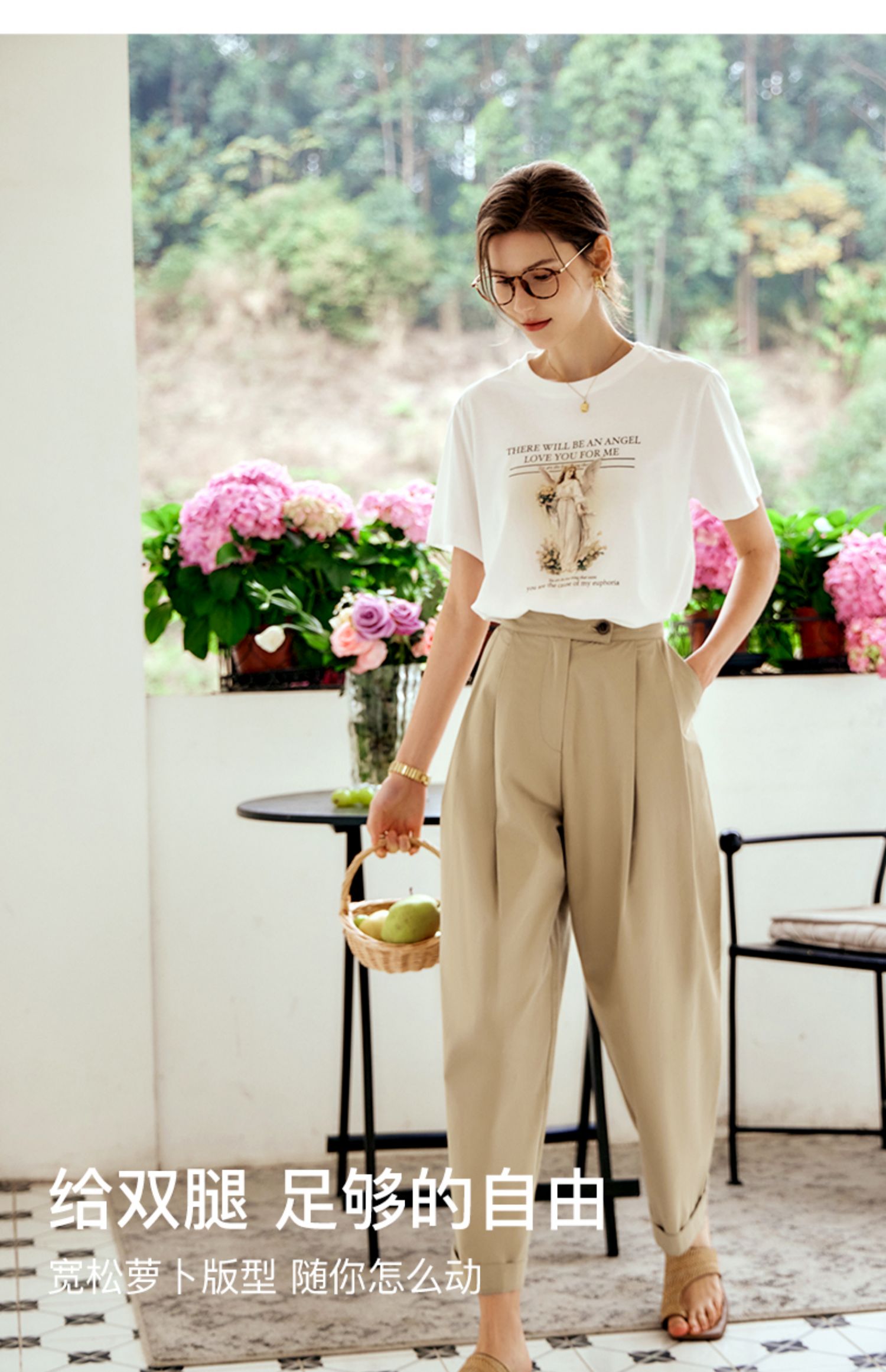 OLrain欧芮儿卡其色休闲裤女夏季2024年新款通勤百搭小个子萝卜裤