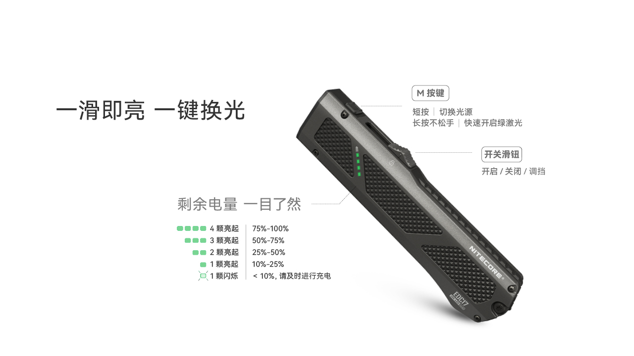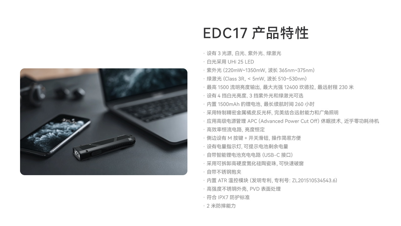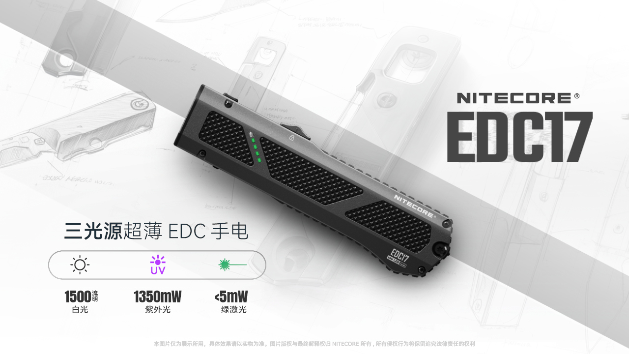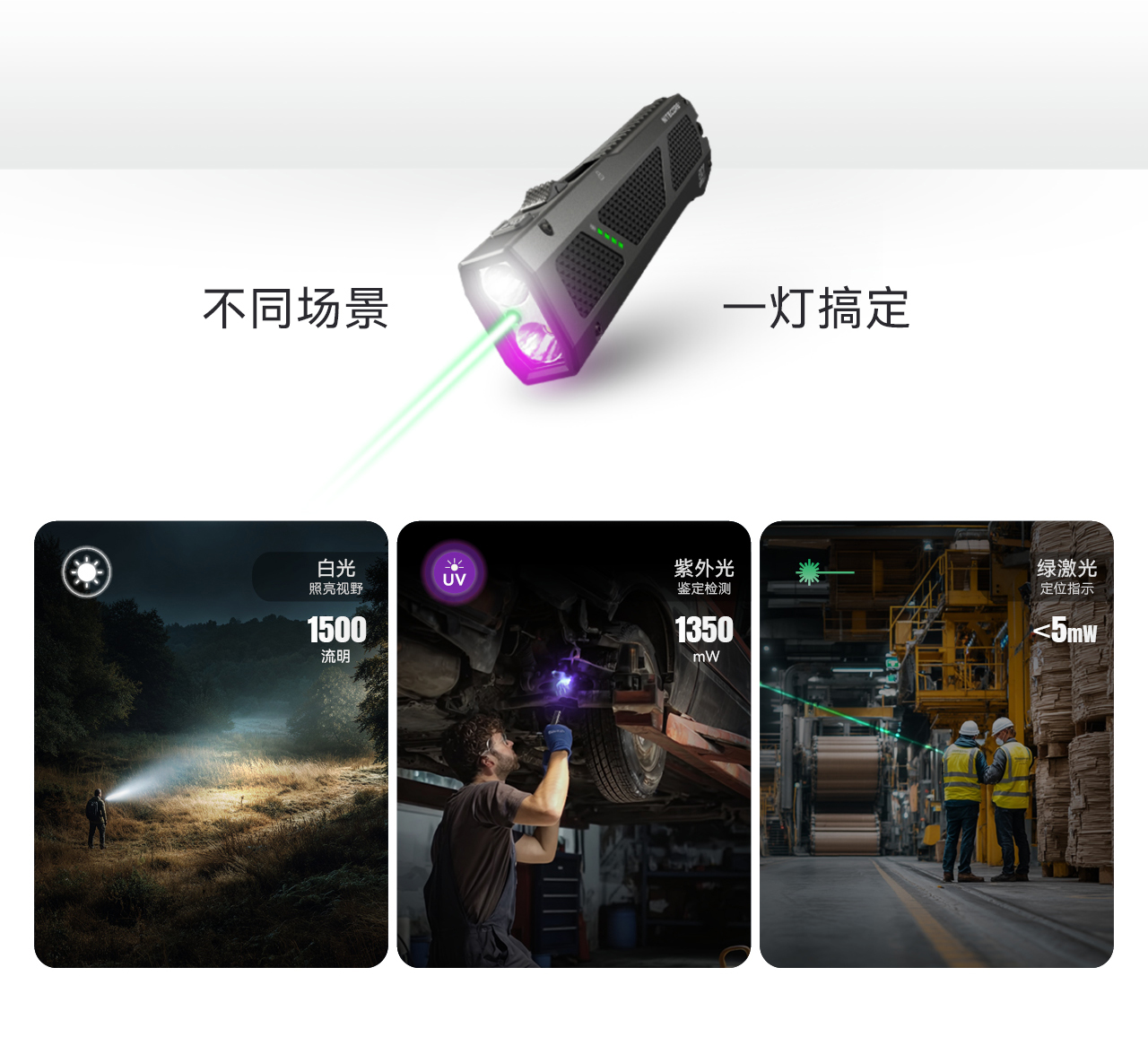 NITECORE奈特科尔 EDC17多功能多光源绿镭射激光紫外光白光检测照明工具手电