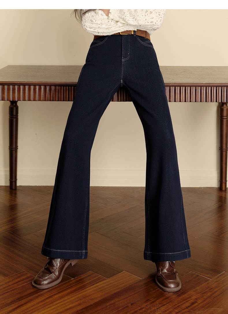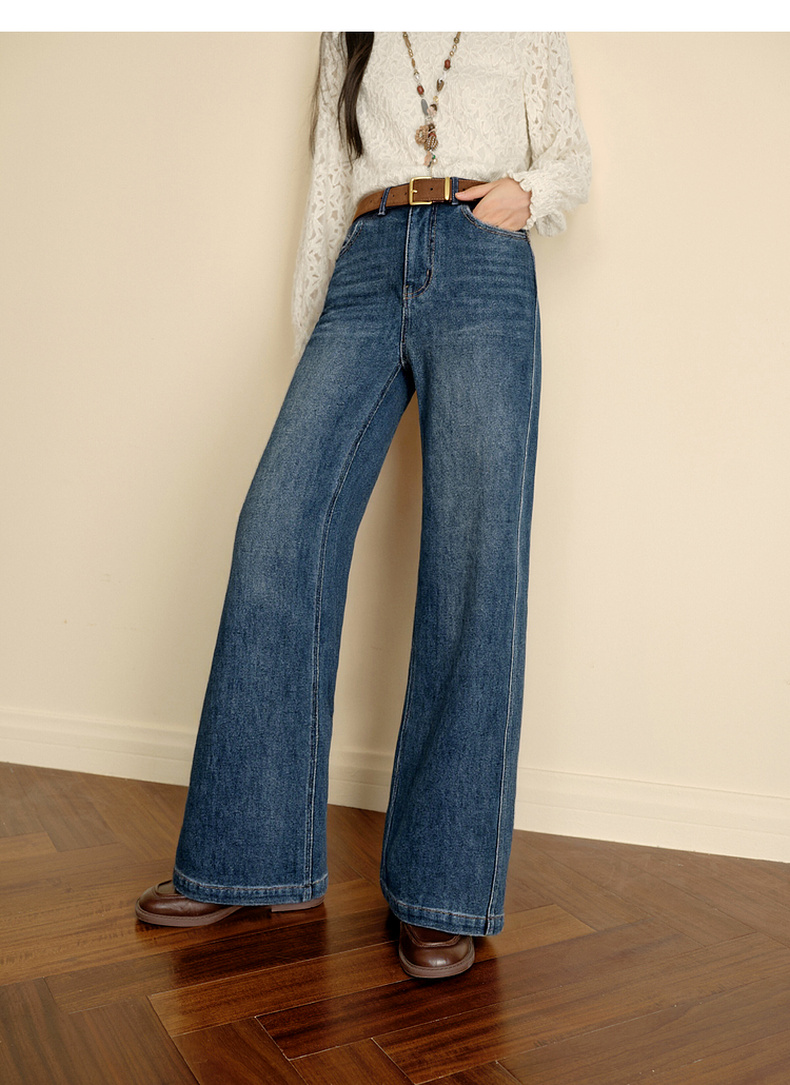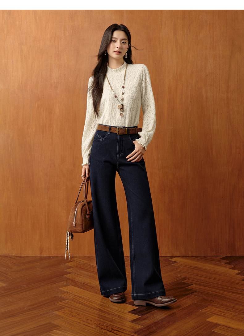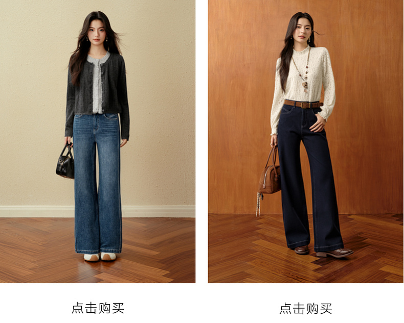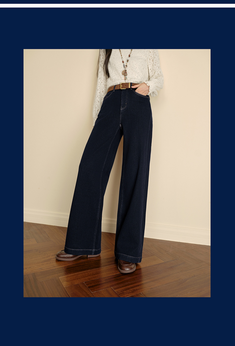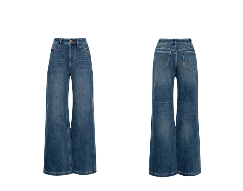 【严选】诗凡黎四面弹磨毛微喇阔腿牛仔裤2025冬新款高腰显瘦宽松直筒长裤7GA351221