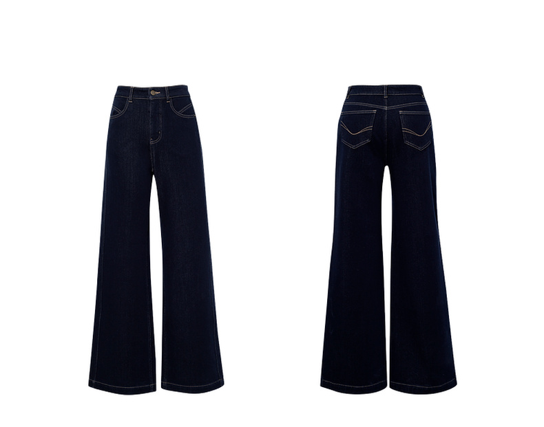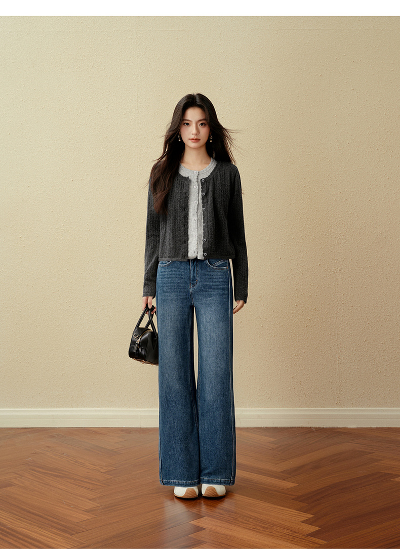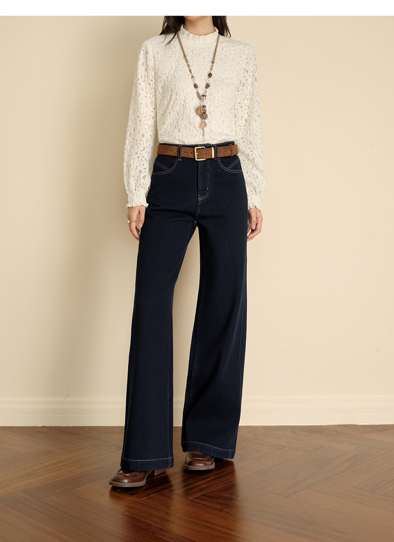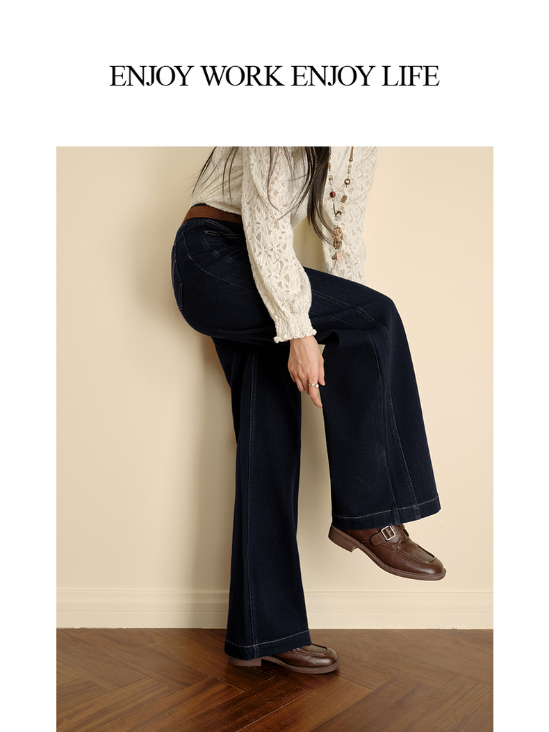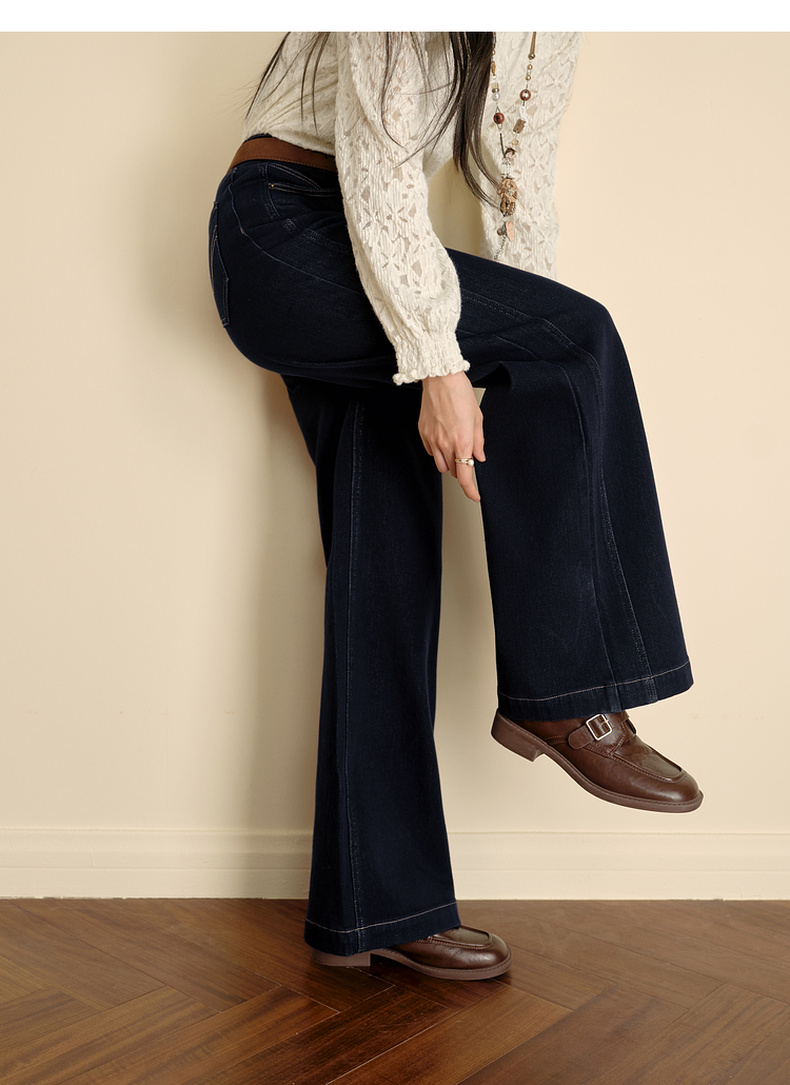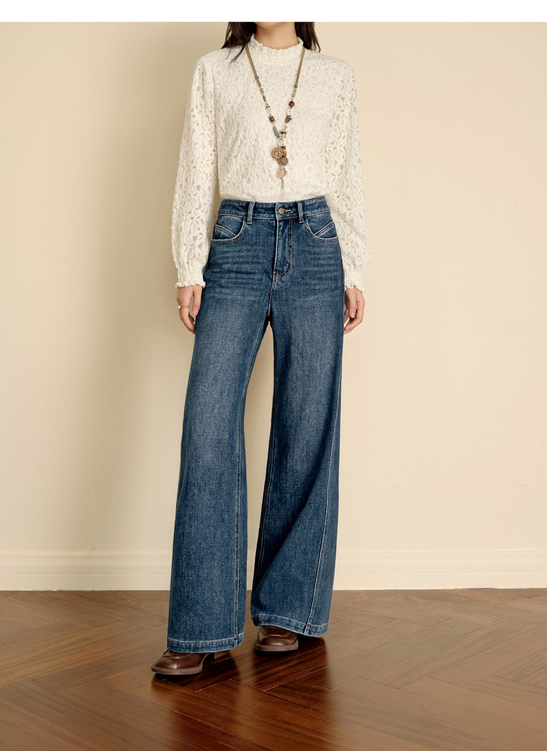 【严选】诗凡黎四面弹磨毛微喇阔腿牛仔裤2025冬新款高腰显瘦宽松直筒长裤7GA351221