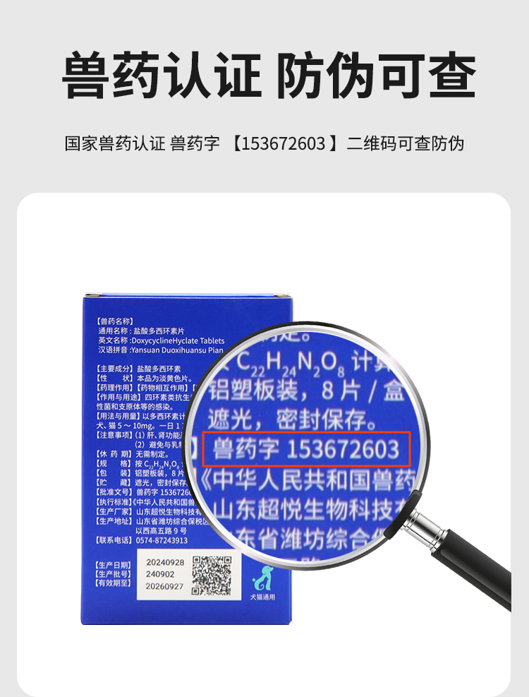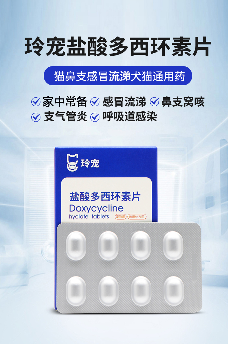 玲宠犬猫药盐酸多西环素片狗狗鼻支宠物咳嗽药猫咪感冒药犬窝咳
